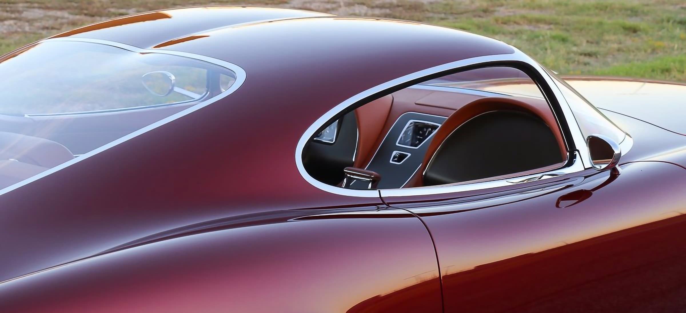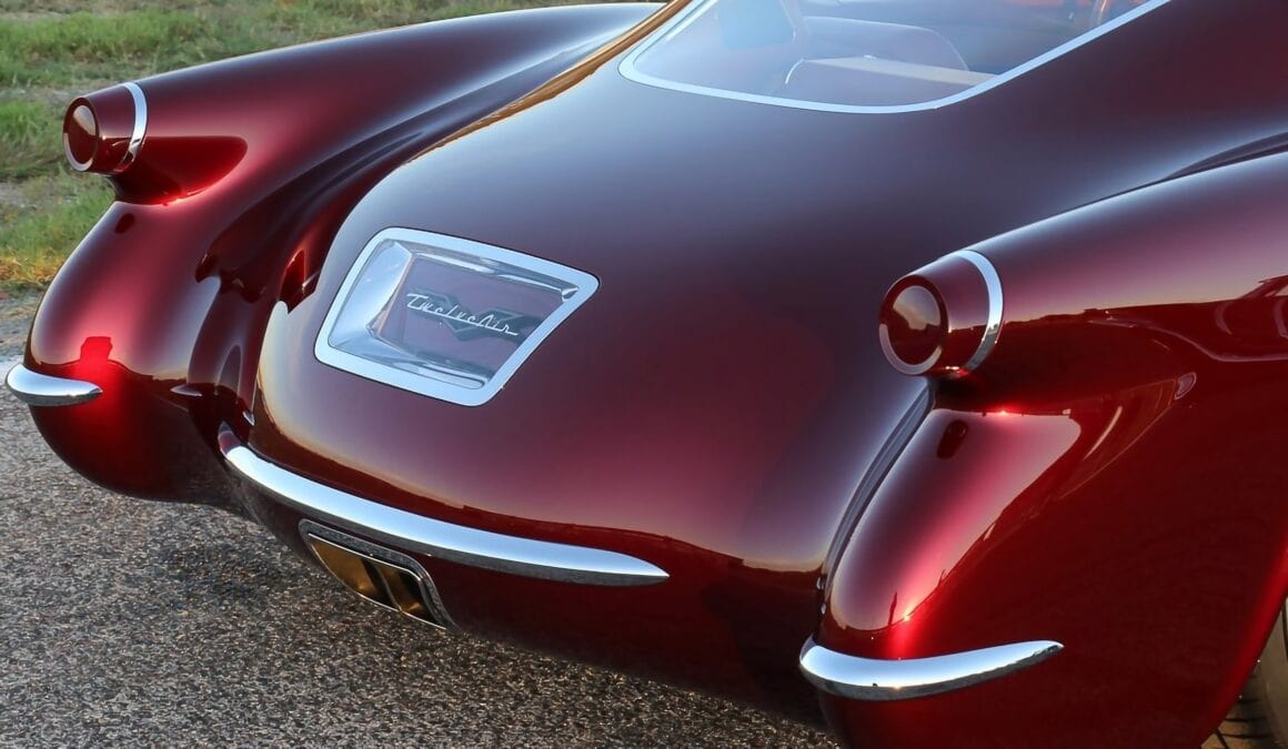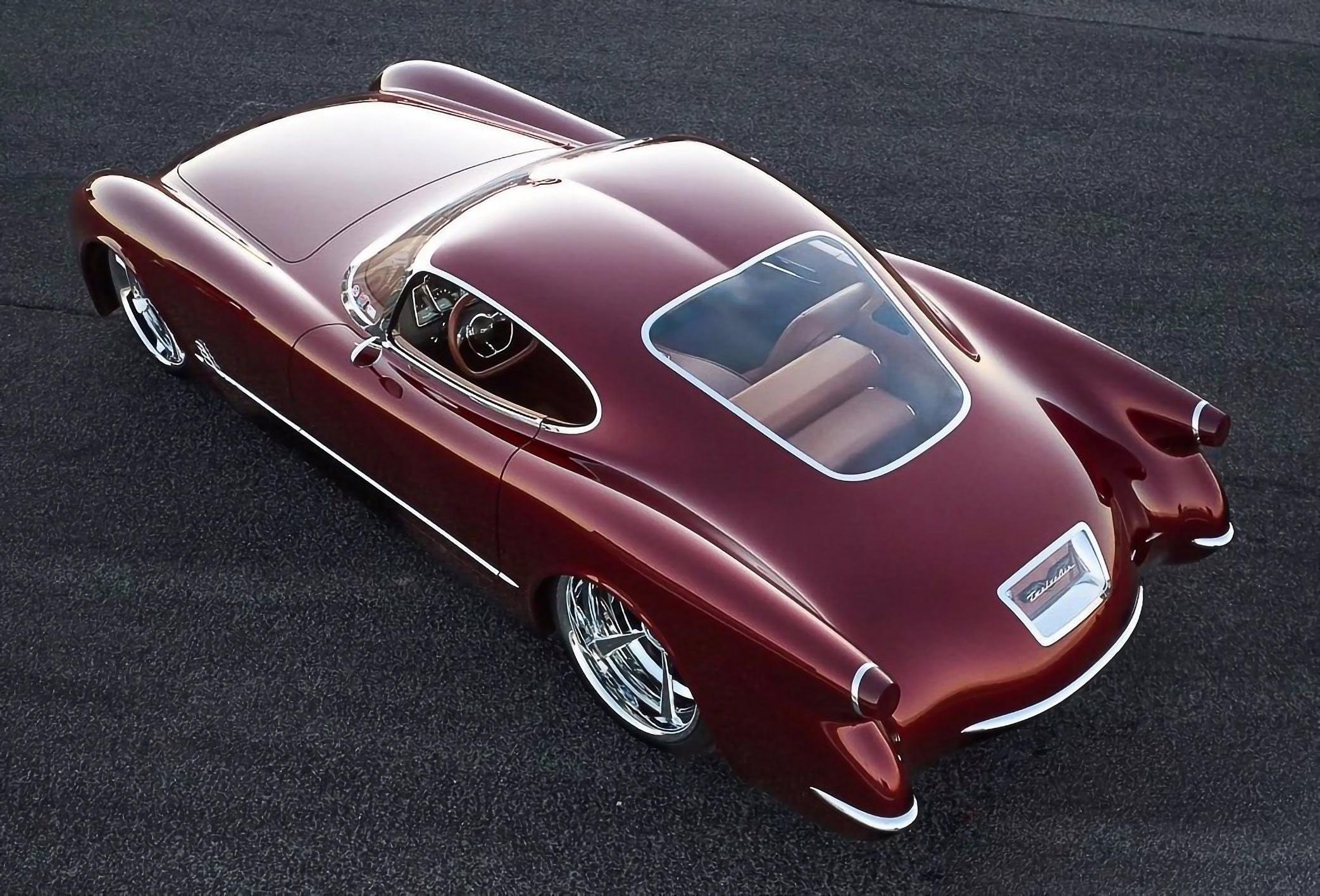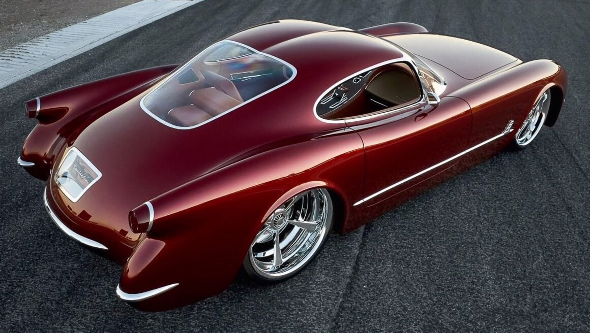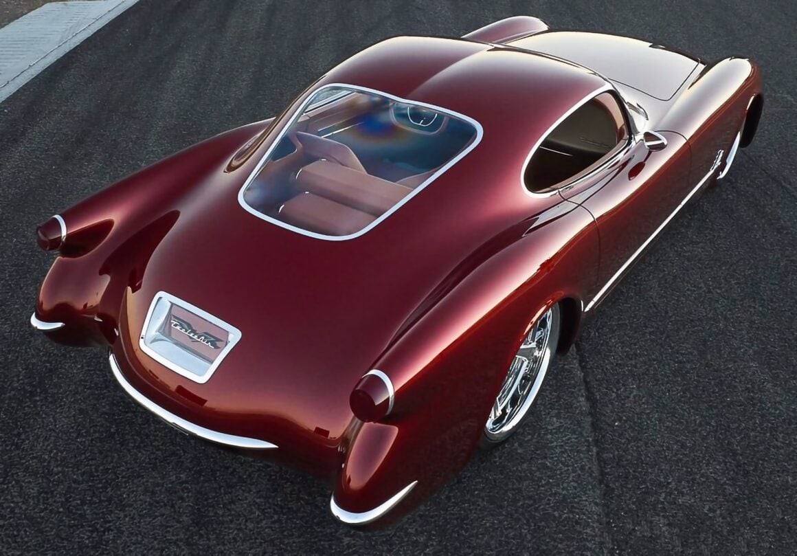 Celui de nombreuses années d’expériences de Kindig en matière de conception, de fabrication et de construction de voitures personnalisées. Il est basé sur un design prétendu vierge mais inspiré du concept-car Chevy Corvair, une version fastback de la Corvette de première génération (1953) qui n’a jamais vu le jour. Et ce, avec diverses adaptations glanées un pneu partouze telle la Volvo P1800 “Le Saint”... La version de Kindig intègre également d’autres éléments de design innovants de l’époque, comme un toit à double bulle similaire à ceux que l’on trouve sur les Ferrari vintage et autres voitures de sport italiennes.