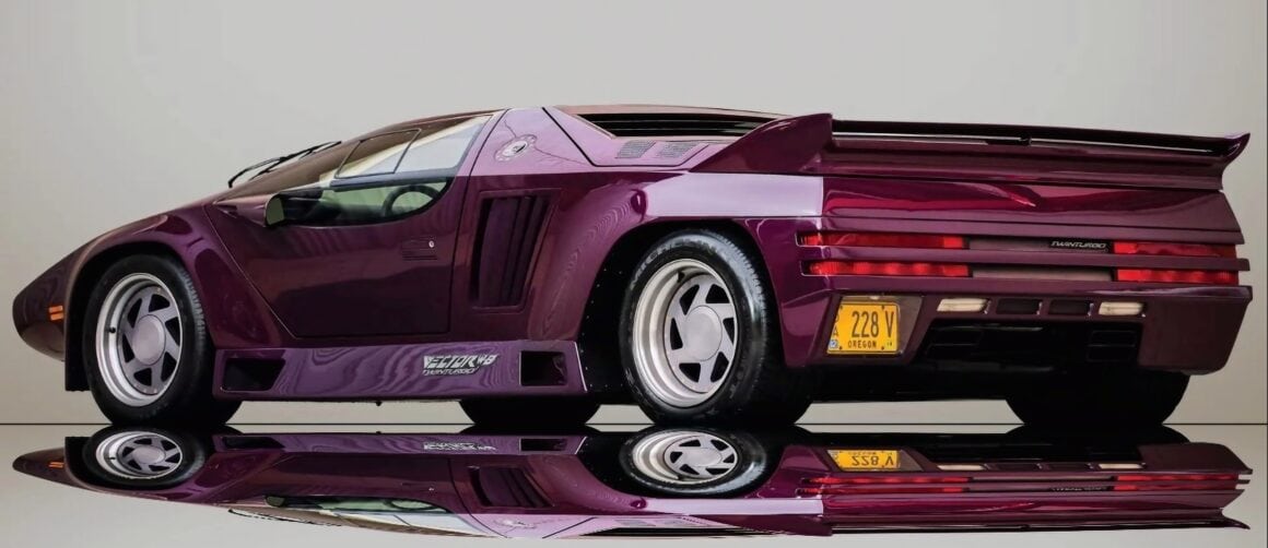 Car les VHS ont été remplacées par les disquettes et carte “pucées”, mais Vector s’est cassé la gueule et n’a donc plus dû s’inquiéter de fournir un vrai matériel promotionnel… Gerald/Jerry Wiegart a donc rejoint un groupe restreint d’escrocs tels que Preston Tucker, John DeLorean, Malcolm Bricklin et bientôt suivi d’Elon Musk, qui ont tous entrepris de perturber une industrie et de construire leurs automobiles… Vector s’est ainsi ancré dans l’histoire noire de l’automobile rien qu’avec son design futuriste époustouflant pompé sur la Carabo de Bertone, son cockpit inspiré des avions et ses prétendues performances exaltantes qui étaient toutes fausses… Avec seulement une poignée de voitures produites, les Vector sont rarement proposées à la vente, en particulier avec un faible kilométrage, réalisé aux alentours de la propriété d’origine des malheureux propriétaires et avec une documentation d’origine identique par photocopies, pour meubler le temps des lésés durant les interminables et fréquentes réparations… La Vector n’est a acheter que si vous êtes masochiste pervers ET BDSM soumis ET milliardaire à l’ancienne… Je concède avoir moi-même été dupé… et pour ma défense visant l’acquittement total, je plaide via mes chroniques concernant cette chose…