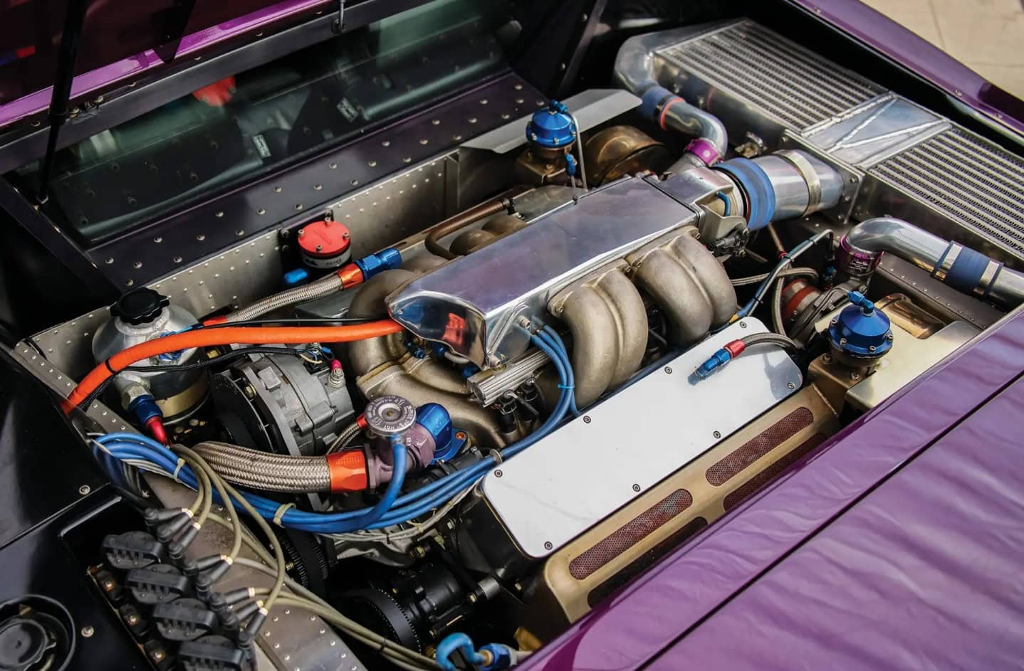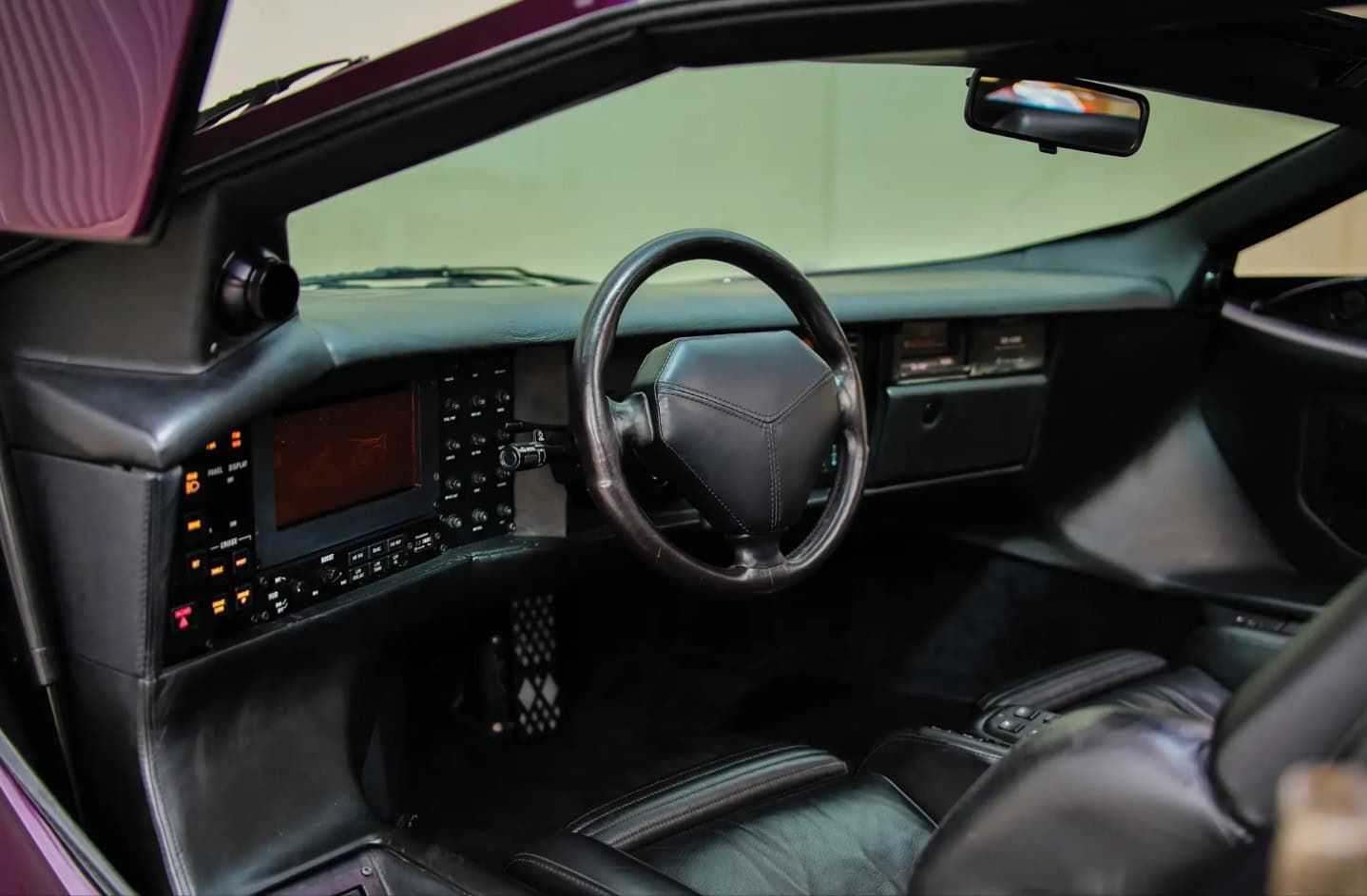 Cependant, la Vector n’a été que partiellement achevée qu’à la fin de 1991 et, en tant que telle, a reçu un autre VIN mis à jour reflétant l’année modèle 1991, ce qui a entraîné un changement dans le 10e chiffre du VIN… et une inculpation pour faux et usage de faux qui va s’éterniser comme d’autres jusqu’à la faillite et l’auto-suicide probable… Avant cette fin misérable, les Vector’s étaient toujours en panne et, ne pouvant l’avouer de crainte de ne plus savoir s’en défaire sans casse financière, le malheureux propriétaire de cette Vector W8 Twin Turbo de 1991 n’a pu que parcourir 2.268 miles depuis sa création. Sans cesse des pannes et réparations longues et couteuses et ainsi de suite… Comme cette chose est typique du consumérisme des automobiles merdiques hors de prix, les retombées négatives sont aussi aléatoires que les Supercars elles-mêmes… Tout y est “Look” comme la mode et ne fonctionne (mal) qu’au paraitre et à la publicité avec retour d’ascenseurs, dessous de table et pots de vin, qui pour l’instant sont surutilisés pour couvrir divers changements de régimes politiques. L’intérieur rappelle (de loin) un cockpit d’avion, avec un écran d’ordinateur numérique et de nombreux instruments mis en valeur par une boussole Airpath et un compteur d’heures Hobbs.