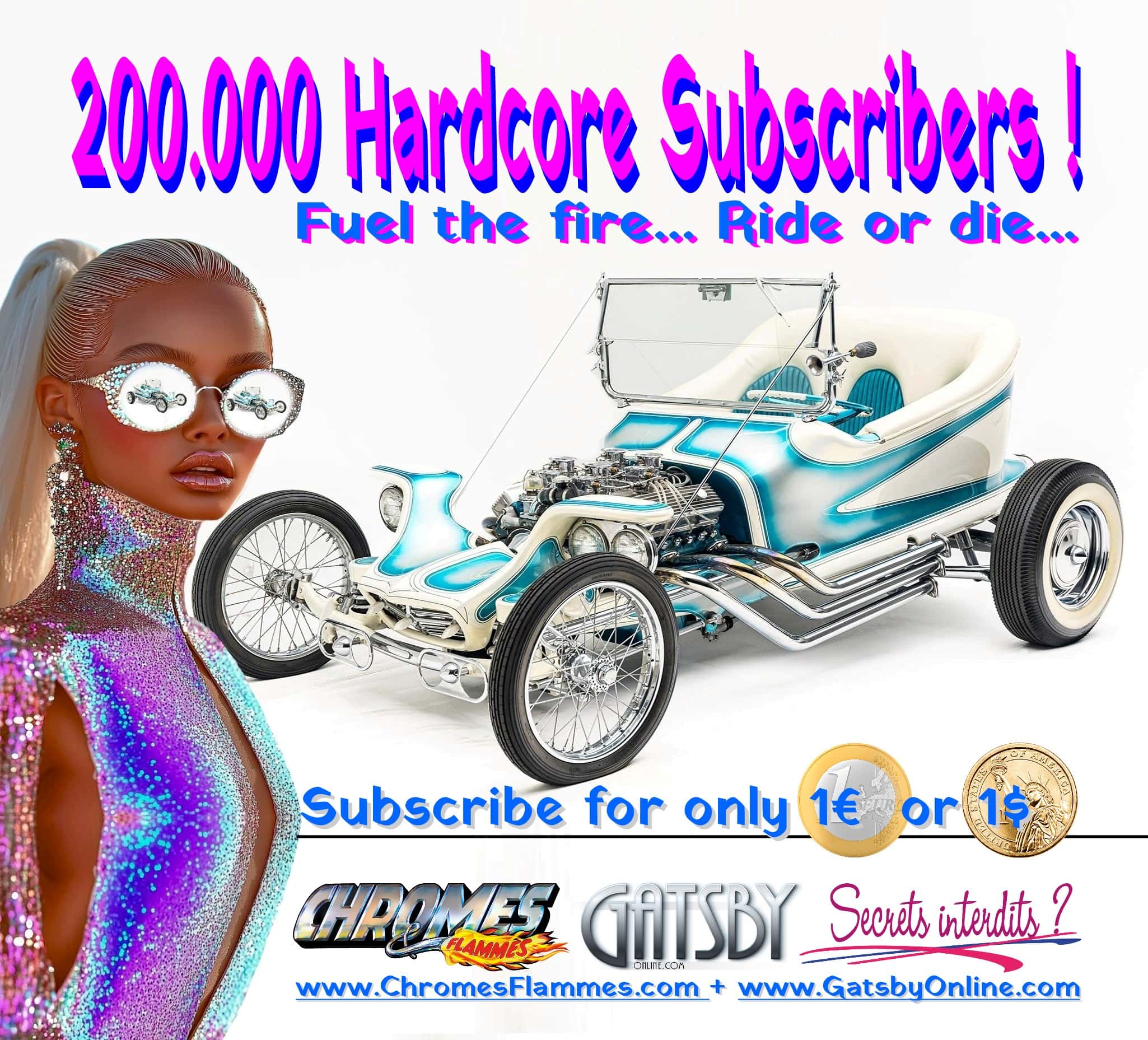 Pour illustrer ce chef d’œuvre d’écriture, je vais tout simplement reprendre les illustrations de têtes d’articles de mon Web-site… Tout est parti de ce qui fut pour moi, un bref temps, “LA” voiture idéale d’autant plus que Johnny Hallyday en avait acheté une, échangée de la Lamborghini Miura toujours en panne acquise d’un coup de tête un petit matin de beuveries Saint-Tropéziennes. Je sortais d’adolescence et publiait déjà un magazine de décoration/architecture avant-gardiste, avait déjà créé un bureau de dingue, des fauteuils de “ouf’s” et lancé un magazine d’architecture et décoration que j’avais nommé “HOME” et qui existe toujours quoique revendu pour créer LE MAG’ ultime qui bouleversera ma vie : Chromes&Flammes… Grande épopée qui a aboutit à un magazine numérique mondial incorporant un traducteur IA avant l’heure qui “spermet” d’avoir 200.000 abonnés/internautes -Worldwide…