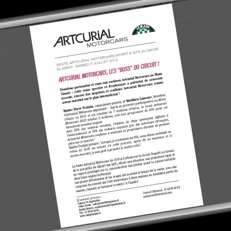 Il semble clair que la maison Artcurial, pourtant réputée, a été soudainement incompétente dans la gestion de cette vente, jusqu’à leur communiqué de presse où ils annoncent fièrement une croissance de cette vente par rapport à celle de 2010 alors que, ramené aux nombres de lots vendus, le prix moyen a chuté de 48 % (139 véhicules en 2012 contre 56 en 2010).