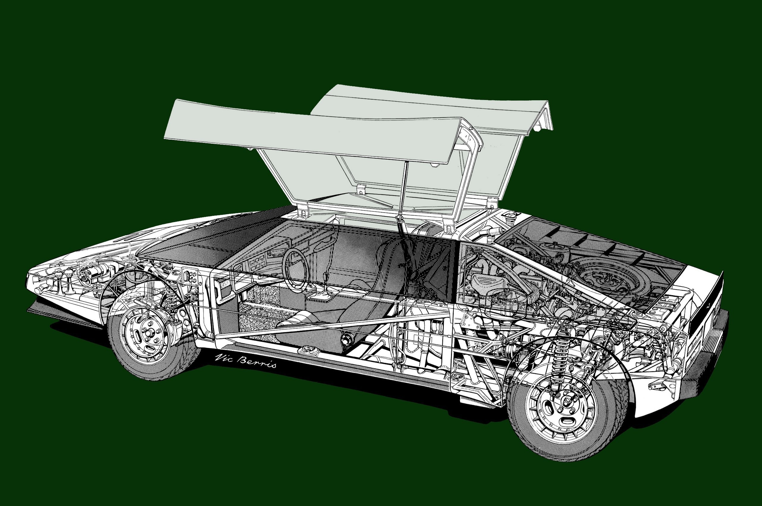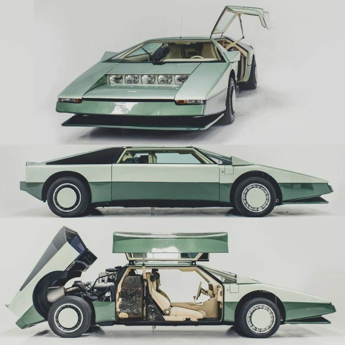 Sont arrivées la Lamborghini Countach, la Lancia Stratos Zéro, la BMW M1, la Lotus Esprit, la Ferrari Modulo, la Maserati Boomerang, la Citroën Karin. Rien n’était trop stupide pour être “Top-mode”, pour tout : lunettes triangulaires, robots-mixer cubiques, chaussures à bouts carrés, assiettes rectangulaires. Je m’y étais mis aussi dans ma maison d’angle au toit plat, tout y était cubique. Ma cuisine était un bloc, ma baignoire une demi-sphère… J’avais la tête au carré et le sourire en coin… Je rêvais de l’auto-cube-unipower de Quasar Khanh ! Bref plus rien ne tournait rond… Aston-Martin s’y était mis avec l’anguleuse Lagonda dont j’avais acheté un exemplaire et j’étais émerveillé devant la Bulldog que je comparais avec la Lazer de Panther !