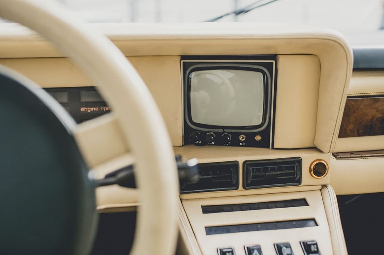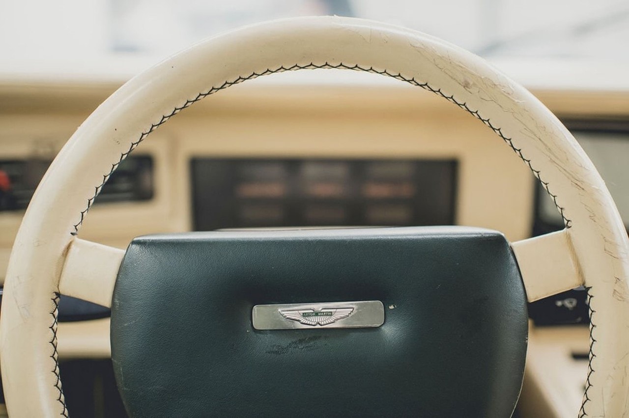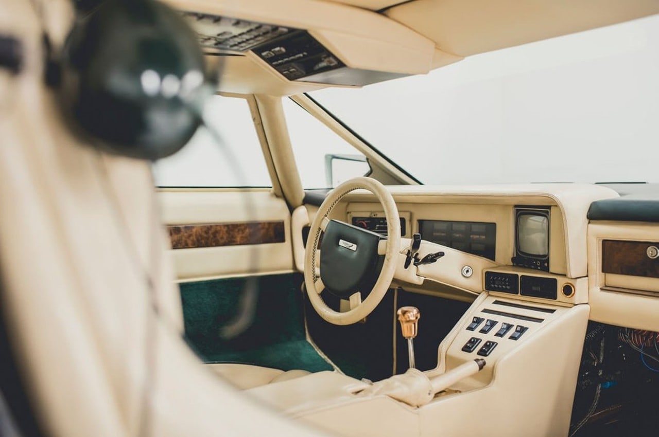 À l’origine, l’Aston Martin Bulldog était peinte en argent et en gris et comportait un intérieur en cuir marron foncé et noir. La carrosserie en forme de coin n’avait pas de rétroviseurs, mais un écran couplé à une rétro-caméra. Cinq phares cachés derrière un panneau rabattable et des portes papillon massives. L’intérieur était également à la pointe de la technologie avec des capteurs tactiles et des LED, similaires à ceux de la Lagonda (ceux de la mienne étaient sans cesse en panne électronique, ce f… tableau de bord ne fonctionnait pas bien du tout, un vrai cauchemar. Si vous regardez les photos, vous remarquerez peut-être l’intérieur et la conduite à gauche qui semble étrange pour une voiture britannique, mais cela aurait été fait pour stimuler l’intérêt des clients potentiels aux États-Unis, un marché important pour les voitures de sport et les supercars. Aston Martin a toutefois perdu ce marché potentiel parce qu’elle n’avait pas respecté les réglementations d’émissions très strictes.