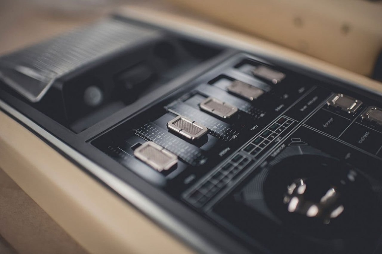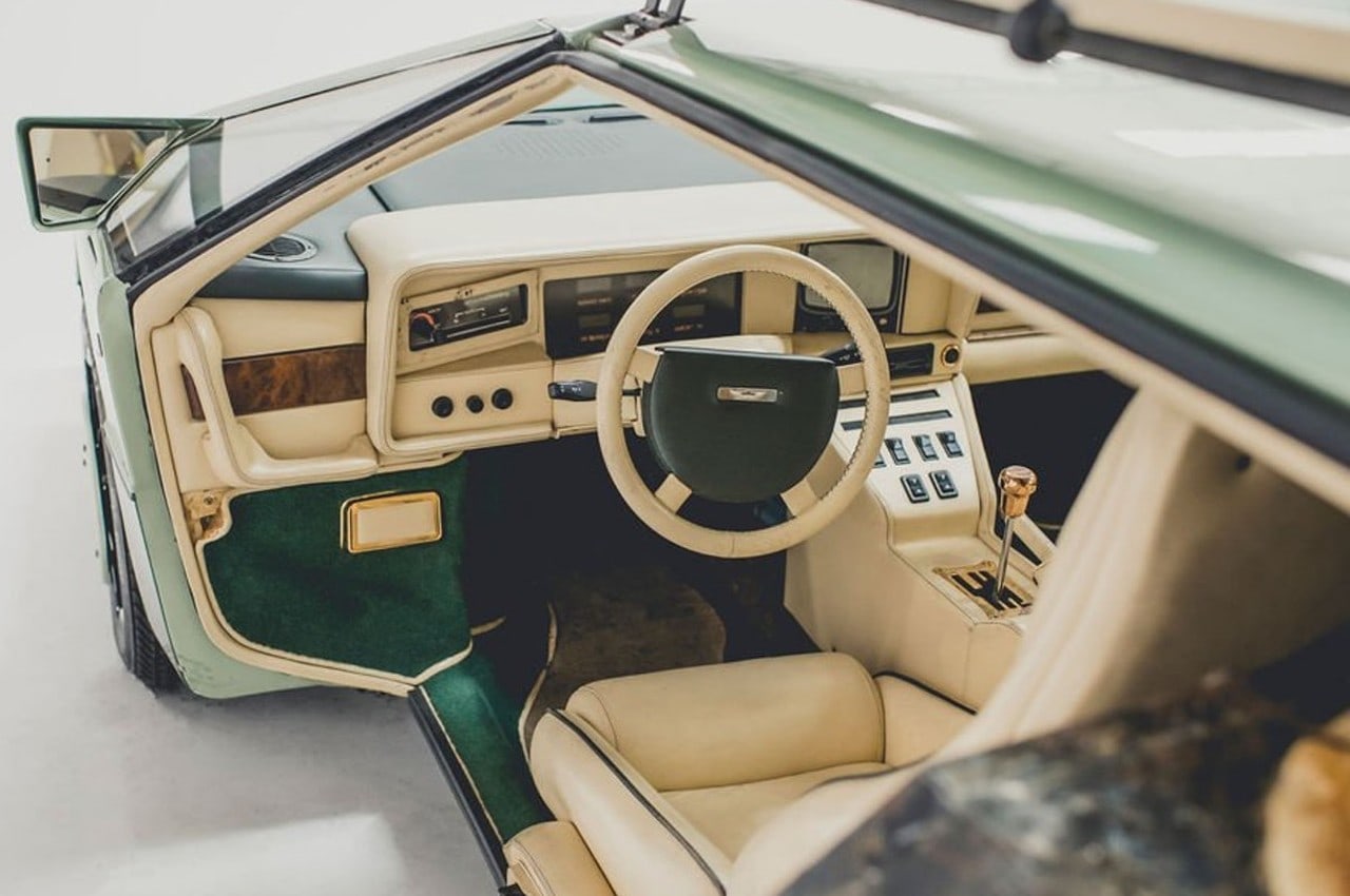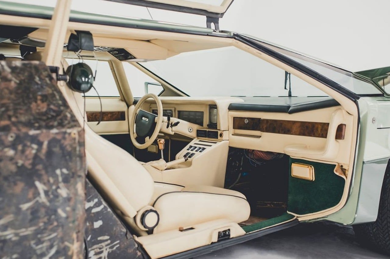 À l’origine, l’Aston Martin Bulldog était peinte en argent et en gris et comportait un intérieur en cuir marron foncé et noir. La carrosserie en forme de coin n’avait pas de rétroviseurs, mais un écran couplé à une rétro-caméra. Cinq phares cachés derrière un panneau rabattable et des portes papillon massives. L’intérieur était également à la pointe de la technologie avec des capteurs tactiles et des LED, similaires à ceux de la Lagonda (ceux de la mienne étaient sans cesse en panne électronique, ce f… tableau de bord ne fonctionnait pas bien du tout, un vrai cauchemar. Si vous regardez les photos, vous remarquerez peut-être l’intérieur et la conduite à gauche qui semble étrange pour une voiture britannique, mais cela aurait été fait pour stimuler l’intérêt des clients potentiels aux États-Unis, un marché important pour les voitures de sport et les supercars. Aston Martin a toutefois perdu ce marché potentiel parce qu’elle n’avait pas respecté les réglementations d’émissions très strictes.