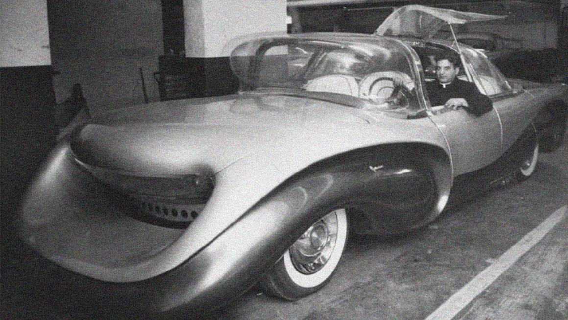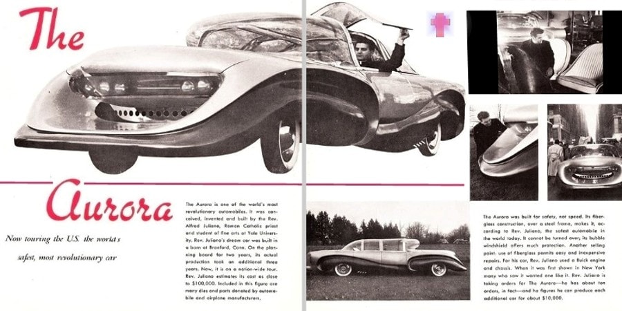 Les lignes grotesques de l’Aurora n’étaient pas fortuites , ni nécessairement le résultat de l’emprise divine de Juliano en tant que designer…, avant de se consacrer à la prêtrise, le jeune Julian avait reçu une bourse d’études au département de design de General Motors sous la tutelle du légendaire tsar du design automobile Harley Earl…, ces bourses, accordées à seulement 1 candidat sur 100, étaient considérées comme un grand honneur ainsi que la voie royale la plus rapide pour vivre une carrière réussie en tant que designer dans le colosse automobile qu’est General Motors…, cependant l’appel de sa vocation était plus fort.
