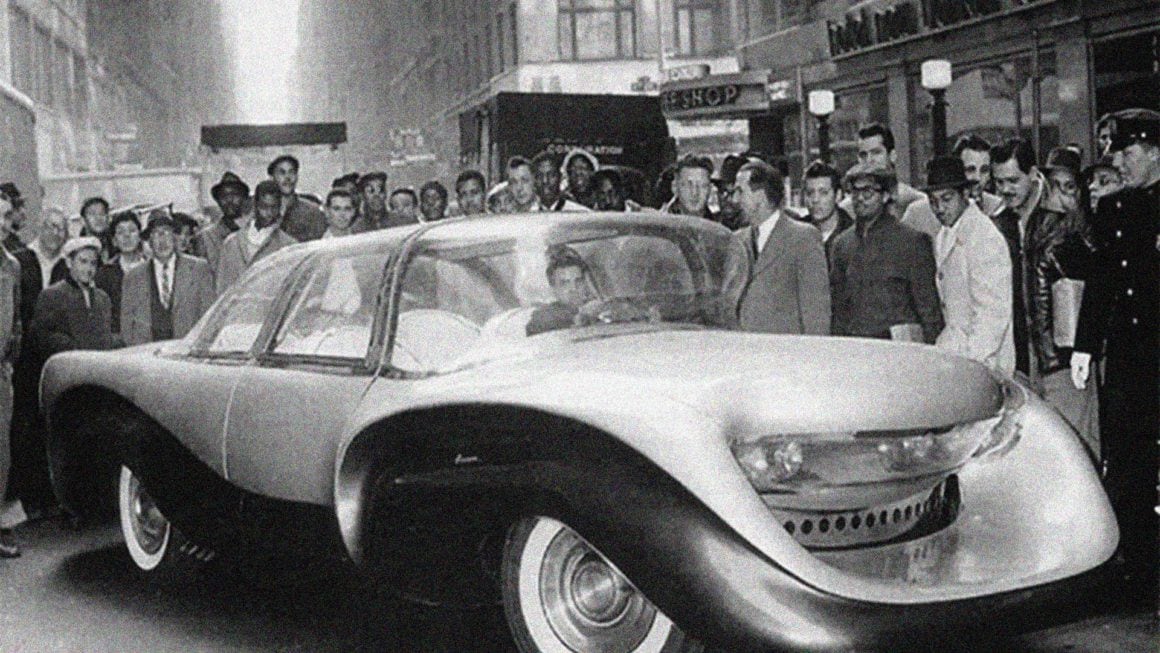 Spécialement conçue pour les longs déplacements sur autoroute, la voiture disposait de quelques raffinements techniques, dont un toit en plastique teinté transparent, appelé “astrodome”… et des crics hydrauliques commandés du tableau de bord, qui permettaient de soulever la voiture pour les opérations de maintenance ou pour changer une roue.