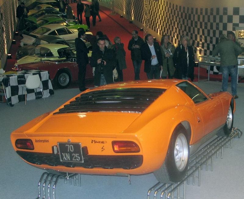Présentée uniquement en châssis à Turin en 1965, la P400 de Lamborghini captiva les visiteurs, professionnels ou non, par sa compacité et son architecture à moteur V12 central arrière transversal d’une modernité telle que maints “connaisseurs” la virent sur le champ comme l’arme absolue avec laquelle Ferruccio Lamborghini allait pouvoir régler ses comptes avec Enzo Ferrari. La surprise fut d’autant plus grande lorsque Lamborghini affirma et répéta qu’en aucun cas il ne s’agissait d’un châssis destiné à la compétition et qu’une petite série de routières serait produite en raison de la demande. Le pari fut tenu en mars 1966 au Salon de Genève. Habillée par Marcello Gandini sous la signature de Bertone, la nouvelle Miura éleva d’un cran la notion de supercar en passant instantanément du statut de concept car à celui de chef-d’œuvre automobile. Comme il se doit, une telle machine capable d’un tel niveau de performance réclamait quelques développements et mises au point en faveur précisément de sa vocation routière. Des améliorations introduites de 1967 à la fin de 1968 menèrent progressivement à la version P400 S (spinto) dont les principales spécifications concernaient le moteur (nouvelle loi de distribution), les freins (à disques ventilés sur la S dite série 2), l’intérieur (nouveau style et glaces électriques), les transmissions (nouveaux joints homocinétiques) et les amortisseurs (des Koni plus efficaces). Déjà considérée comme la routière la plus rapide du monde, la Miura S confirma cette réputation. Elle avait aussi le mérite de n’avoir pas pris trop de poids :10 pour cent environ face à un gain de 20 ch en puissance et de 1 m/kg en couple.
