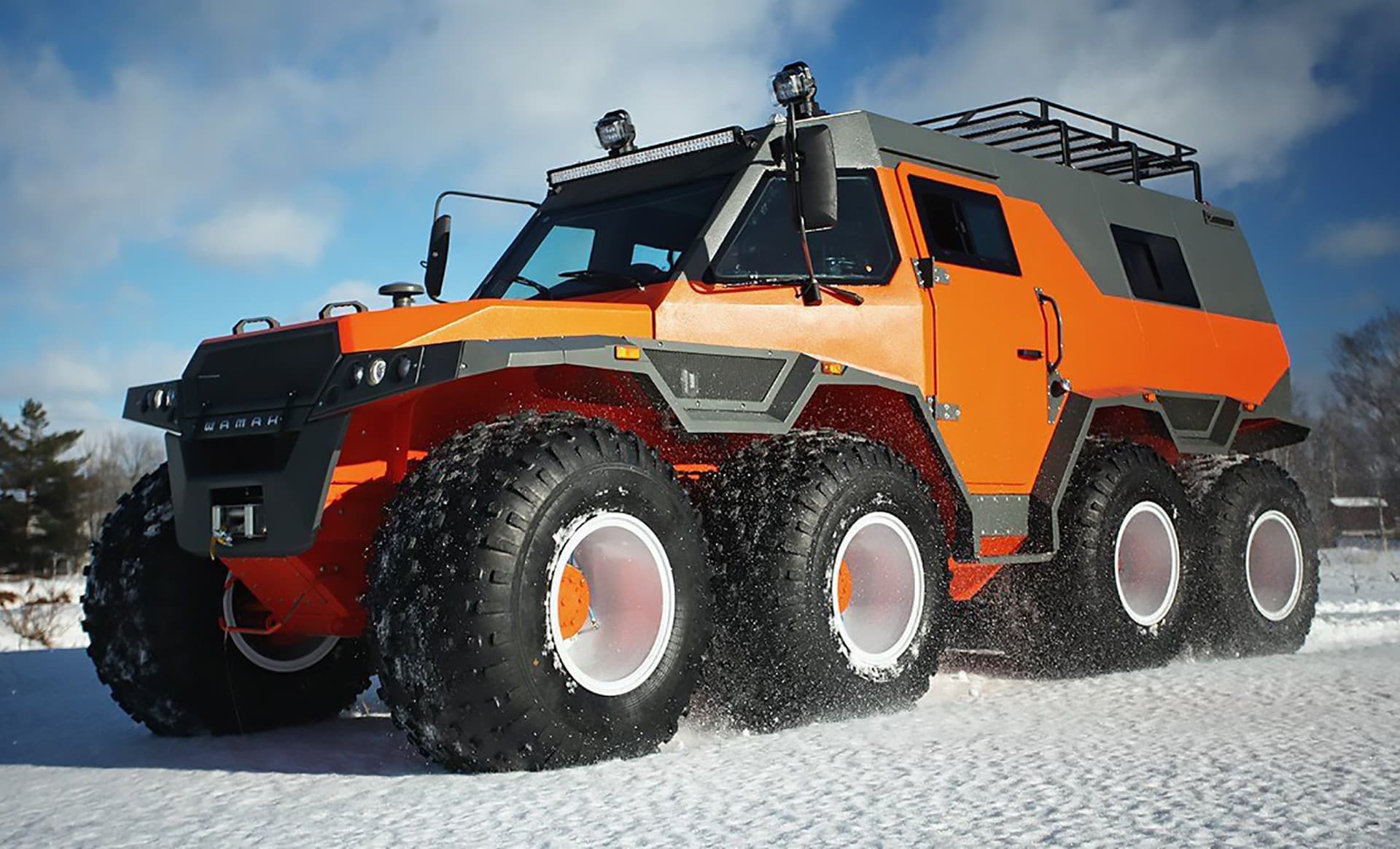 -“L’AVTOROS WAMAH utilise un système pneumatique personnalisable pour modifier individuellement la pression de n’importe lequel des 8 pneus afin d’optimiser les capacités de conduite sur tous les terrains, créant une meilleure traction tout en ne laissant pas derrière lui l’énorme sillage de dommages pour lesquels les véhicules à chenilles sont réputés une dévastation qui, selon moi, peut laisser une cicatrice terrestre pendant plus de 100 ans !”…