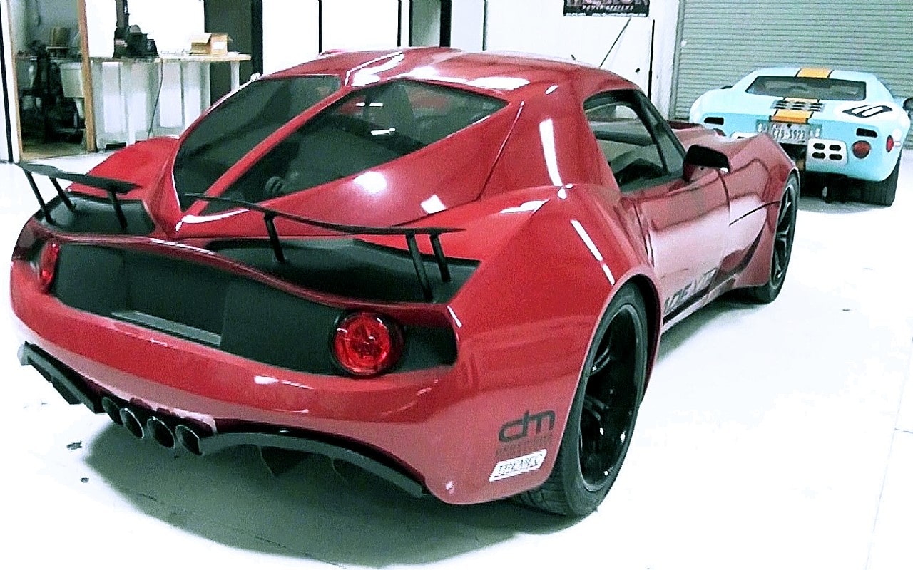 À première vue… et même avec une seconde vue…, ce coupé au très long capot adoptait un design sculpté par un amateur qui risquait d’emblée de ne pas plaire à tous…, si le museau de manquait pas de gueule (sic !) avec sa double ouverture et ses phares amincis, c’est la portion arrière qui risquait de soulever des débats…, l’aileron en deux parties d’inspiration McLaren était très discutable, tandis que la vitre de custode en pointe séparée en plein centre par un pilier inspiré des Corvette C2 Split-Windows et de la Morgan Aéro, n’était certainement pas banale à défaut d’être pratique, esthétique et utile…, heureusement, les feux circulaires (de remorque) n’étaient pas désagréables à regarder…, tandis que l’échappement central était lui aussi un signe d’exotisme…, de plus, de profil, il faut dire que la voiture était plutôt étrange…