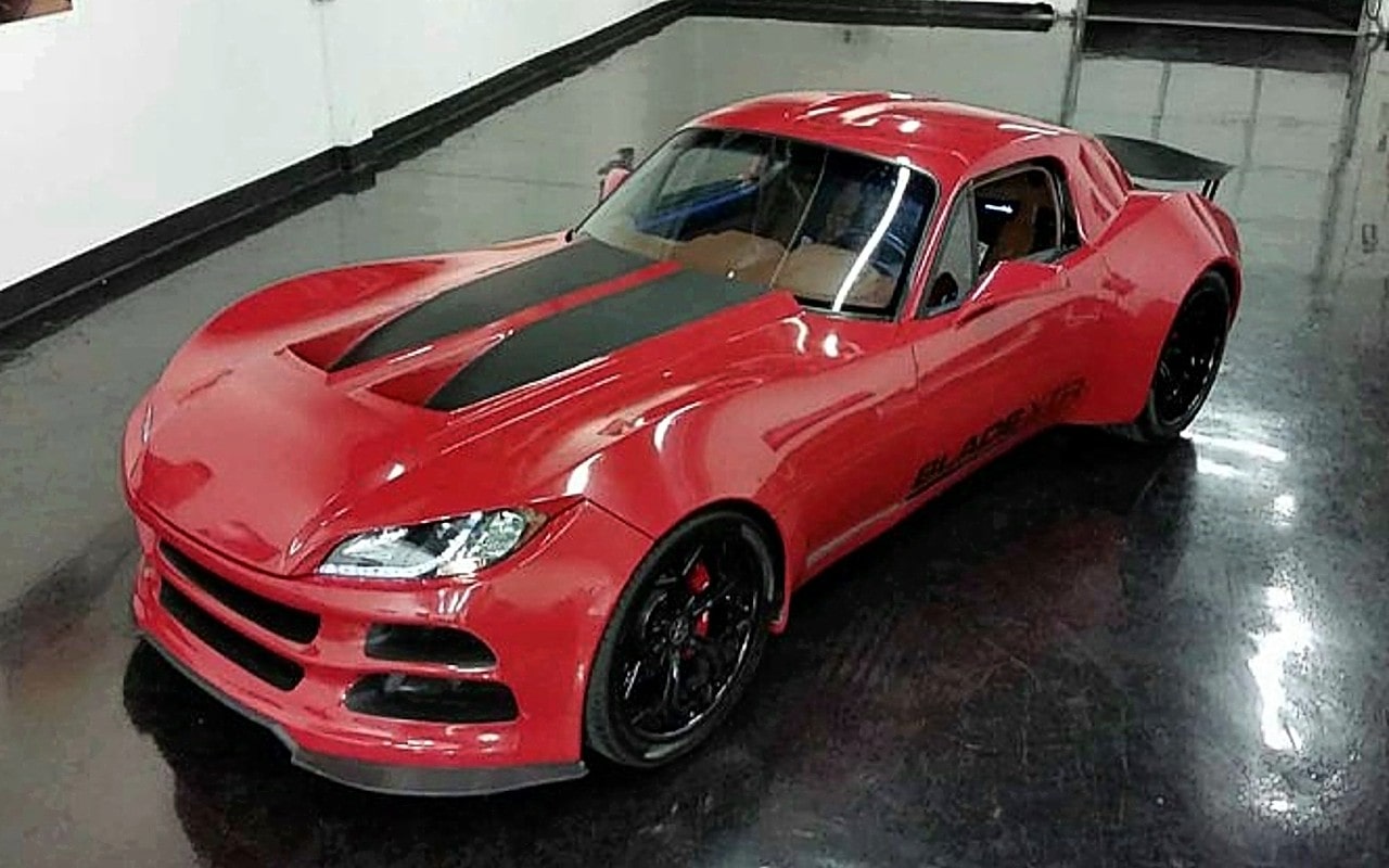 C’est dans cet état d’esprit, avec mon expérience, que j’ai découvert la Bailey Blade XTR by BXR Motors, un mix pompé entre la Dodge Viper et la Morgan Aéro, avec l’allure et la mauvaise finition “plastoque” d’une ancienne Corvette C3 (la pire)…, qui prétendait carburer “Grâââve” avec un moteur bi-turbo V8 Coyote-Mustang TI-VCT (gag !) de 5L0 propulsant en rêve l’engin de 0 à 100km/h en 3 secondes (sic !) grâce à 500 chevaux imaginaires…