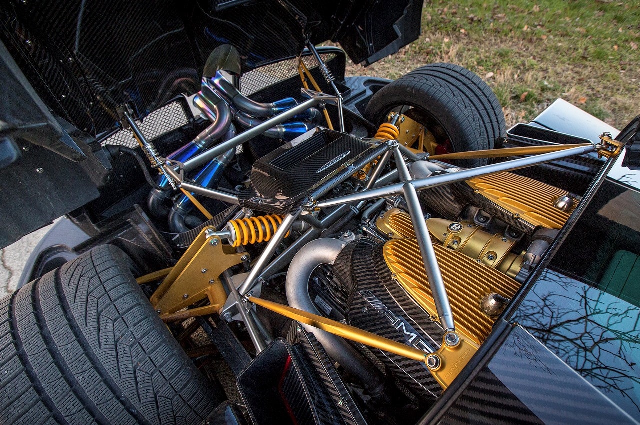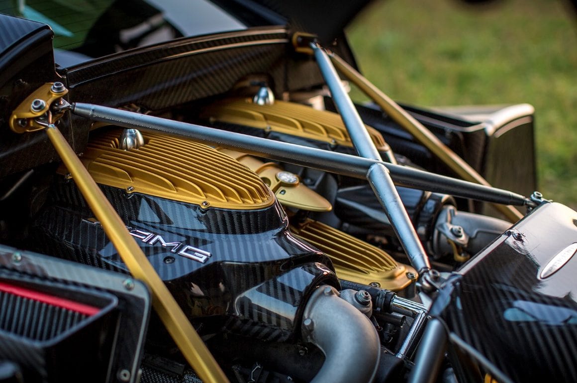 La Pagani Huayra est présentée lors du Salon international de l’automobile de Genève 2011…, elle pèse 1350 kg et est motorisée par un 5980 cc V12 Mercedes AMG doté de deux turbocompresseurs, développant 730 chevaux et affichant 1.000 Nm de couple.