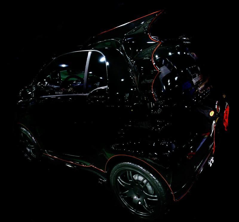 Re-pensée par George Barris, la Batsmart se veut être une version réduite de la Batmobile originale. Et franchement, on s’y croirait ! Ailes de chauve-souris, esthétique fun et teinte black : elle a tout de la grande. Bref, une caisse idéale pour intervenir rapidement quand Gotham City est embouteillée. Peut-être était-ce Catwoman debout à côté de Georges Barris dans le Hall Nord au SEMA, qui peut savoir, toujours est-il qu’avec la Batsmart Georges resservait les ailes de chauve-souris arrière caractéristiques montées en hauteur, un échappement arrière dopé, ainsi que les “flûtes enchantées“, montées sur le toit et sur les portes verticales. Un vrai jouet ! 40 fanas chanceux se sont portés acquéreurs de la Batsmart pour jouer les Batman-justiciers, dont moi…