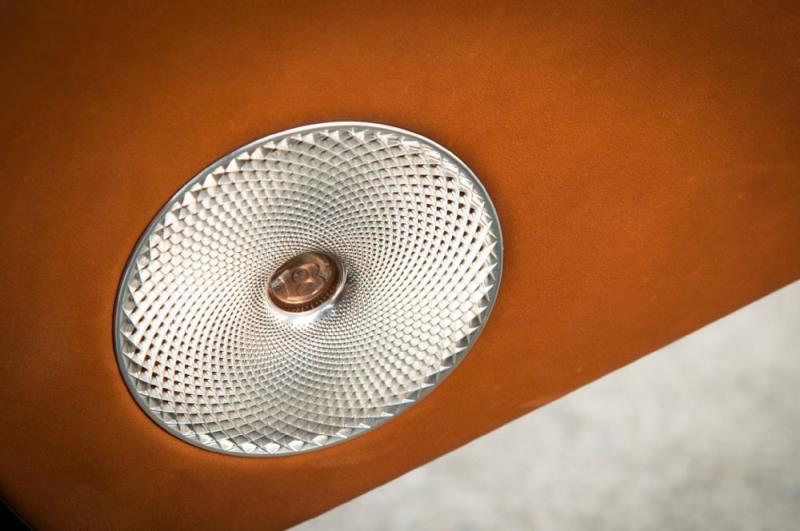 Les caractéristiques du moteur ne m’ont pas été précisées, mais il prend vie sur une simple pression d’un bouton intégré sur le levier de vitesses mariant l’aluminium, le cuivre et le bois de cerisier…, enfin, l’esprit Grand Tourisme est symbolisé par un set de quatre bagages réalisé spécialement pour l’occasion en cuir Poltrona Frau.