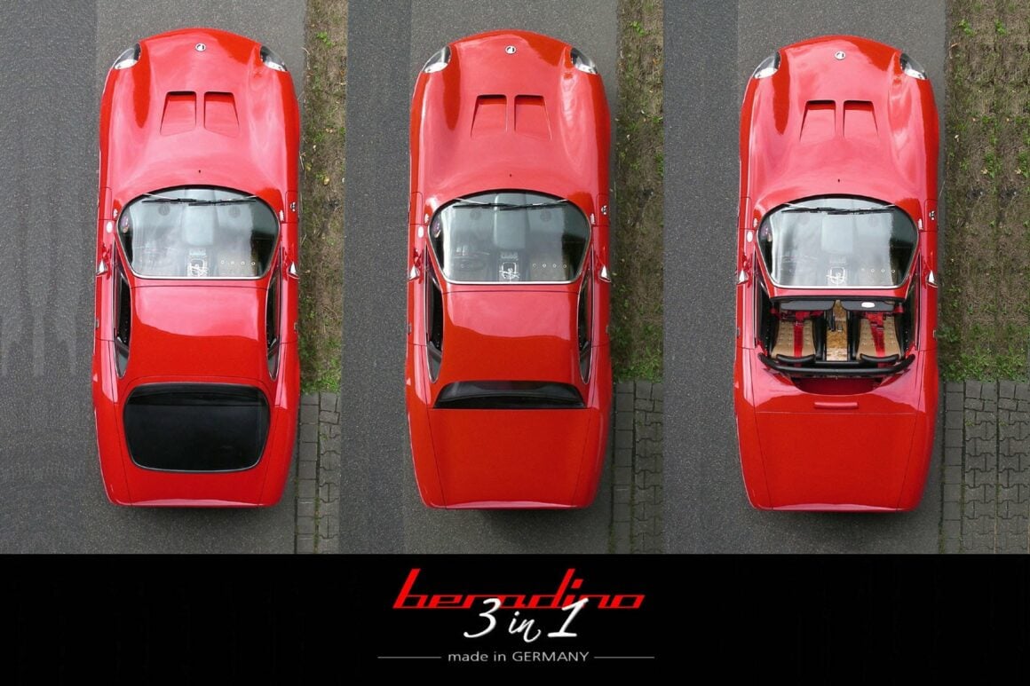 Qui donc ? Vous demandez-vous avec anxiété ? Un acteur de la distribution s’appelait John Beradino, un nom qui s’est totalement, voire définitivement démarqué dans l’esprit de Paulusson. Sa “Beradino” a un design très distinctif, avec des éléments de Ferrari 250GTO, de Ford GT-40 et d’Alfa Romeo Canguro mélangés avec bon goût. Ses proportions suggèrent une GT à moteur avant, malgré son emballage véritable. Le trio de configurations de toit de la voiture est particulièrement intéressant. Il s’agit d’un Fastback, d’un Cranback avec couvercle de coffre et d’un Roadster complet.