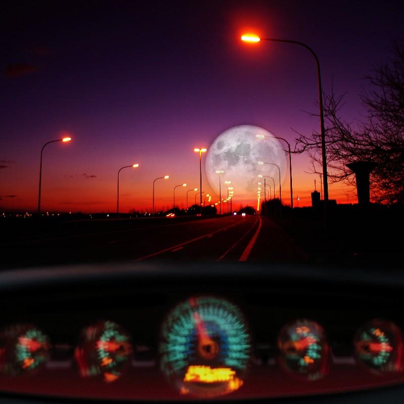 Prowler à nuit tombée. Vivre une route à tombeau entrouvert, comme seul au monde, badgé “Presse” d’un reportage en “à faire” sur la beauté du vide… Pas un flic à narguer, à qui présenter ce “Pass” pour déraison de Covid lunaire, fatigue d’éternité à parcourir l’amplitude ! La radio laisse échapper Blue Moon… You saw me standing alone… Without a dream in my heart… Without a love of my own… Blue moon… You knew just what I was there for… You heard me saying a prayer for… Someone I really could care for… And then there suddenly appeared before me… The only one my arms would ever hold… I heared somebody whisper … “Please, adore me”… And when I looked… The moon had turned to gold… Blue moon… Now I’m no longer alone… Without a dream in my heart… Without a love of my own… And then there’s suddenly appeared before me… The only one my arms would ever hold… I heared somebody whisper… “Please, adore me”… And when I looked… The moon had turned to gold… Blue moon… Now I’m no longer alone… Without a dream in my heart… Without a love of my own…