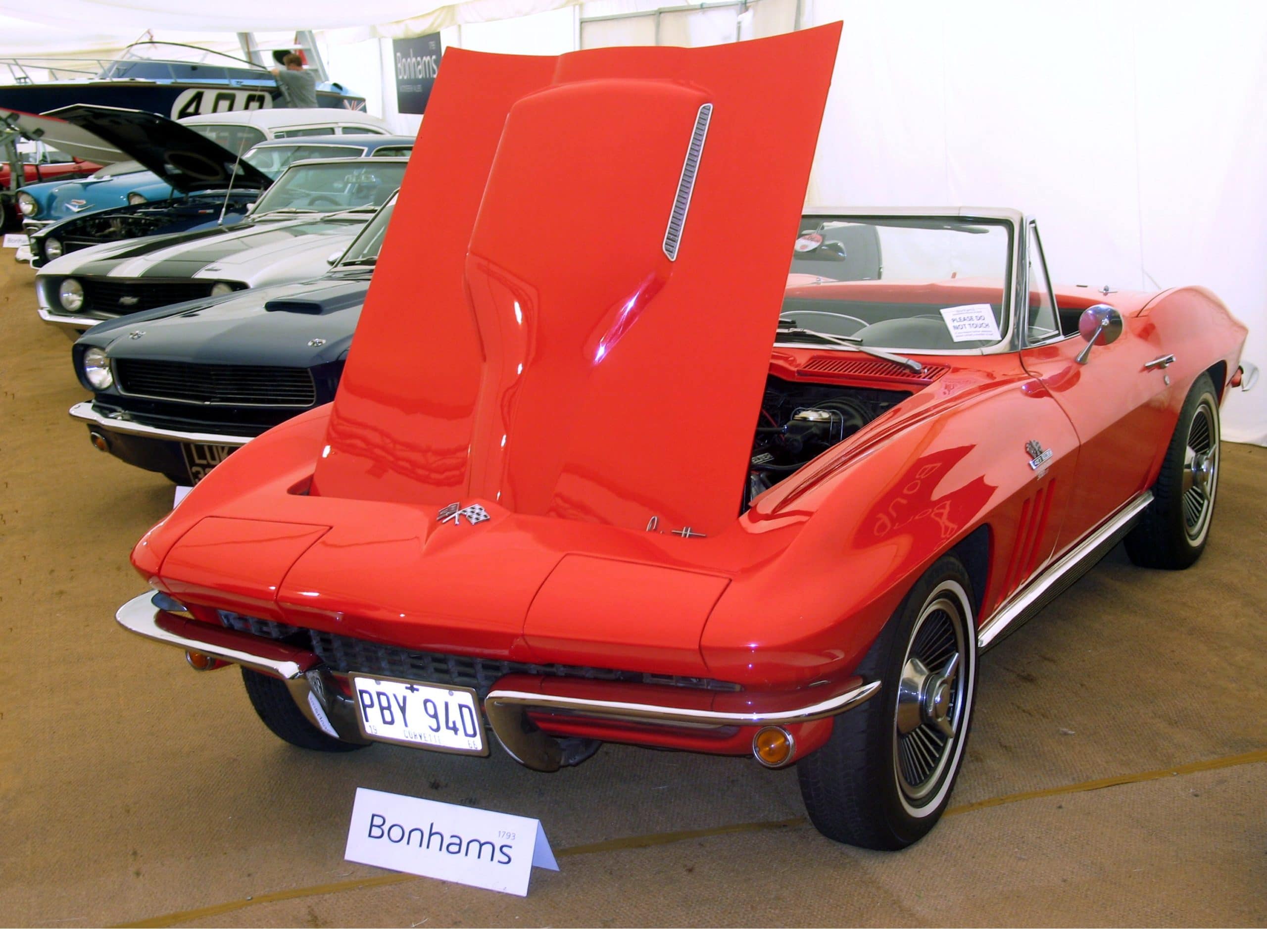 – “Et pourquoi, cher “Quelqu’un “, n’iriez vous pas au “Festival of Speed ” de Goodwood avec votre extraordinaire Corvette Big-Block 1966 ? Bonhams, par mon intermédiaire, est à même de présenter votre inestimable automobile au niveau de son rang, à un public de personnes hautement interessées par ce joyau de l’art mécanique… et donc de découvrir l’acquéreur qui saura l’apprécier et y investira l’argent nécessaire sans être regardant, disons 65.000 Livres Sterling au bas mot, soit légèrement en dessous de cent mille de vos Euros… Tope-là ? “…