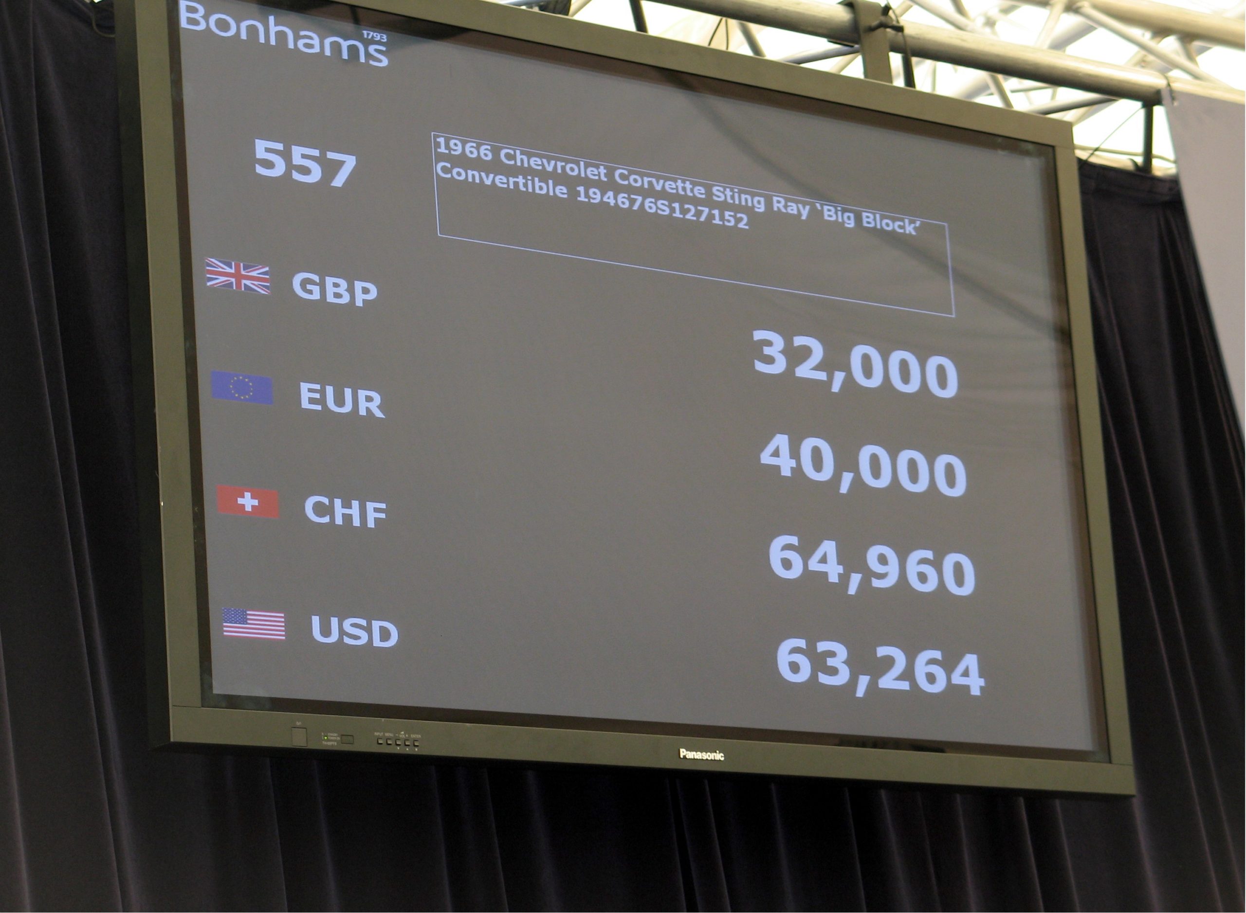 J’étais tout enflammé de les écouter, comme une assurance avant vente que j’allais battre des scores inouïs…, je pensais, en conséquence que j’allais racheter la Cobra (lot #576), la Monteverdi (lot #534) et la Mustang Shelby GT-500 (lot #543) avec seulement la moitié de la vente de ma Corvette (lot #557), n’écoutant quasi-plus leur docte discussion en monologue…