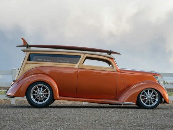Ce sera le chant du signe du célèbre carrossier italien qui renaîtra en 2006 grâce à la société Zeta Europe (mais aussi à Roland D’Ieteren) avec une Maserati Belaggio dévoilée deux ans plus tard lors du fameux concours d’élégance de la Villa d’Este en Italie. Un break cinq portes dérivé de la Maserati Quattroporte, une réalisation que l’on doit déjà au jeune Louis De Fabribeckers qui auparavant s’était déjà fait remarquer avec la maquette grandeur nature de la Turbotraction II de…Spirou ! ET d’un coup d’aile, traversons l’Atlantique pour revenir aux années trente. C’est l’époque où les Américains découvrent que le Woody (certains éléments de carrosserie font appel au bois), constitue une sorte de snobisme pour ceux qui veulent se démarquer de la production en très grande série. Même les marques les plus prestigieuses comme Buick, Pontiac, Studebaker, Packard, vont franchir le pas et proposer des station wagon avec la partie arrière de la carrosserie réalisée en bois. Seuls Cadillac, Imperial et Lincoln vont faire de la résistance, pas question de modèles woodies dans les catalogues officiels ! A la fin de la seconde guerre mondiale, les Américains en profitent pour redécouvrir et ainsi parcourir de long en large leur très grand pays mais cette fois avec des breaks de très grande diffusion qui dans les premiers temps vont ressembler à des woodies, les panneaux de bois arrière étant tout simplement collés ou rivetés sur la carrosserie en acier. Chevrolet, Ford et Chrysler n’échapperont pas à ce phénomène mais quelques années plus tard, les breaks classiques reprennent le dessus, finies les décorations en bois. L’occasion de s’intéresser au premier Shooting brake US de l’ère moderne.