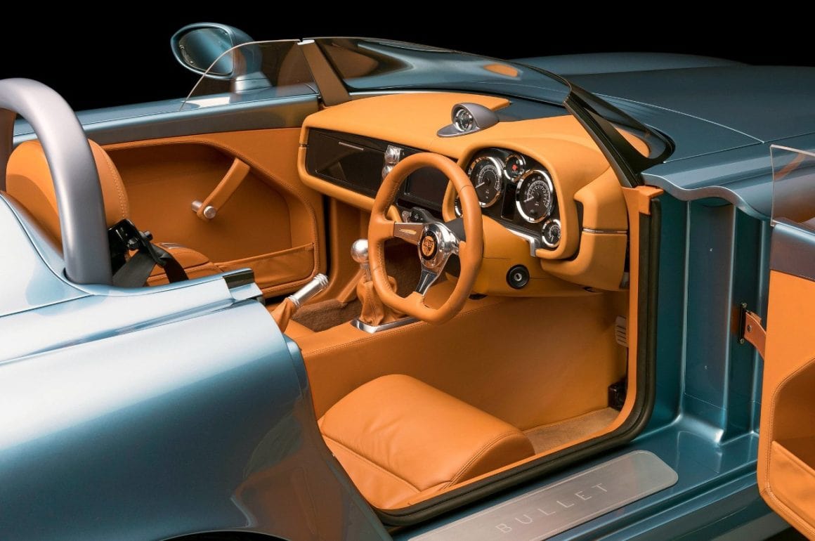 Un prospectus indique toujours que : “Bien que le design de la voiture soit «rétro», les technologies qui seront montées à bord disposeront de mises au gout du jour…, dont un écran tactile haute définition, une connectivité Bluetooth pour téléphone intelligent ainsi qu’une connexion Wi-Fi. La carrosserie entièrement faite de fibre de carbone permettra à la Bullet d’afficher un poids respectable de 1250 kg (2755 lb), l’intérieur du véhicule proposant une finition en cuir, en aluminium et en carbone, sans oublier un tableau de bord garni de bois”…