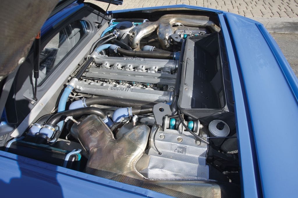 Il avait été imaginé avec des raffinements de Giampaolo Benedini (un architecte lié à Artioli). La force motrice de l’EB110 était fournie par un V-12 à 5 soupapes à quatre turbocompresseurs couplé à une transmission manuelle à six vitesses. Un système de traction intégrale, une autre préfiguration de la technologie des Supercars d’aujourd’hui, a permis d’apprivoiser le V12 tout en garantissant que l’EB110 serait aussi maniable qu’elle était traçable.