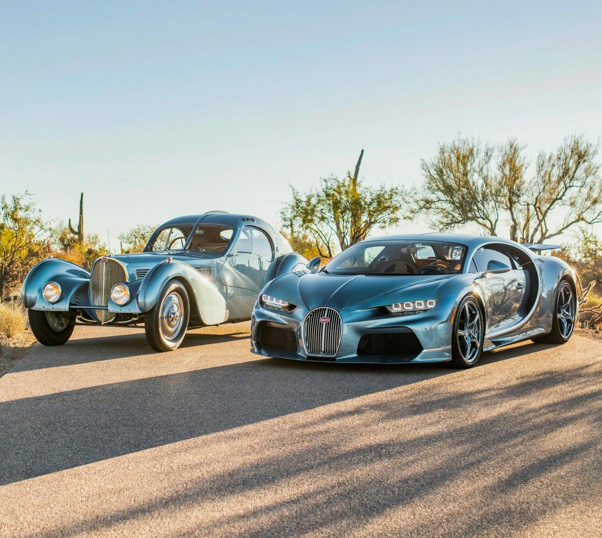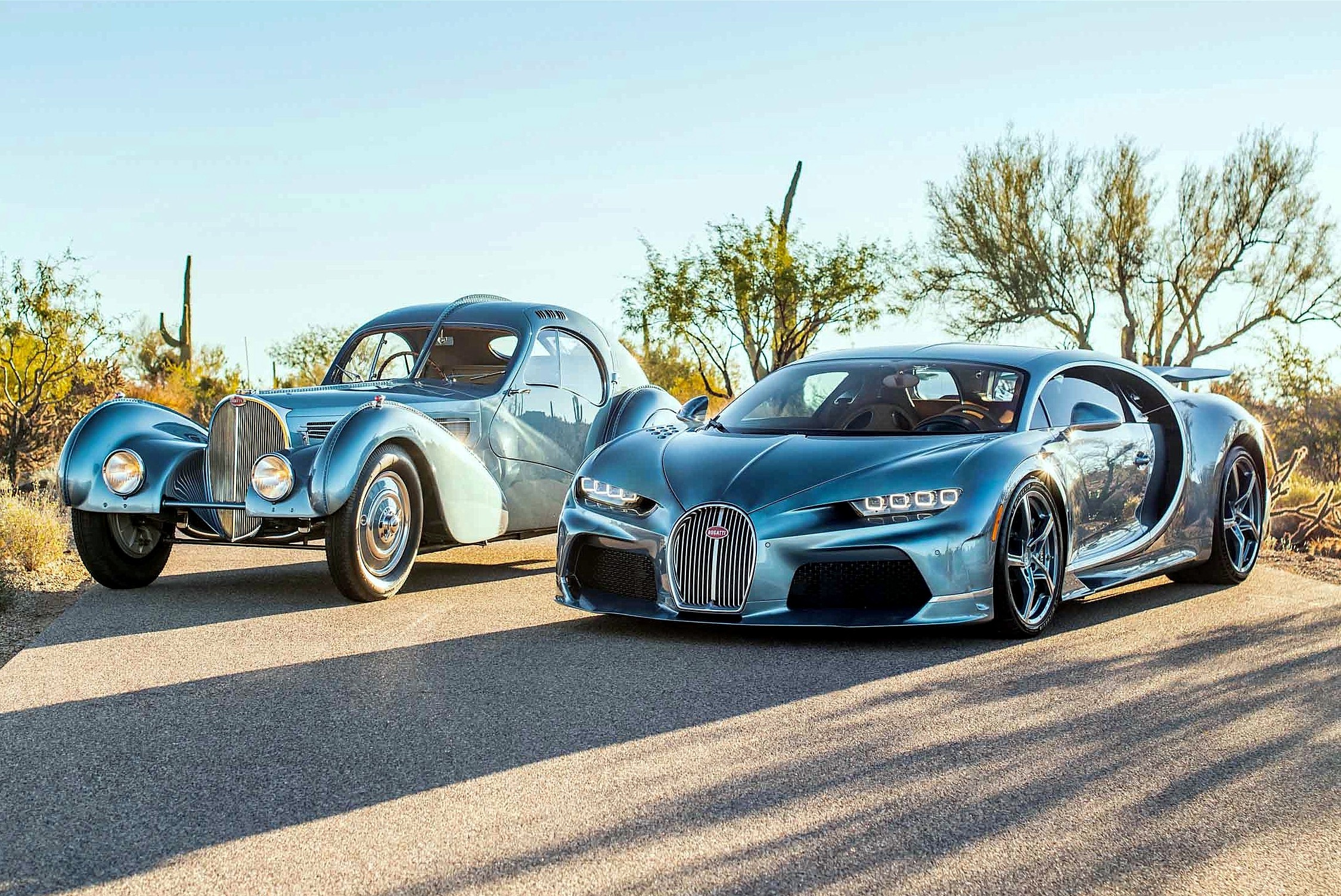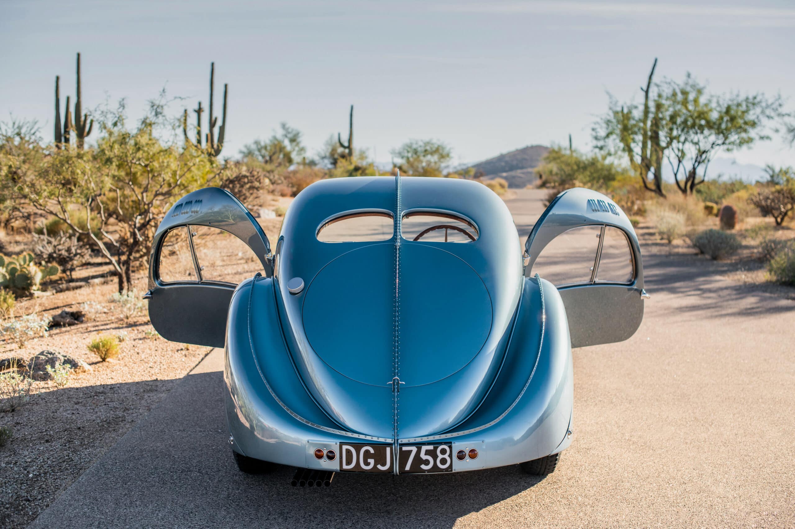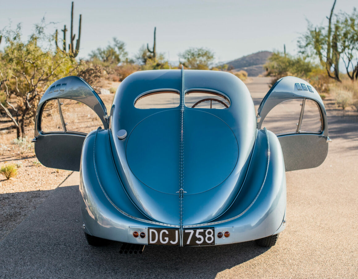 Pour 8 millions d’euros plus taxes et gadgets pour la paire que vous admirez ici en photos, c’est une belle interprétation moderne du consumérisme à outrance, sur base d’une réplique de l’emblématique Type 57 SC Atlantic…Le design est associé à des jantes Super Sport à cinq rayons, combinant chrome poli et le même bleu métallisé avec des accents chromés “vibrants”. Le dessous de l’aileron arrière présente une silhouette dessinée à la main de l’Atlantic..,