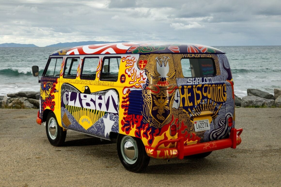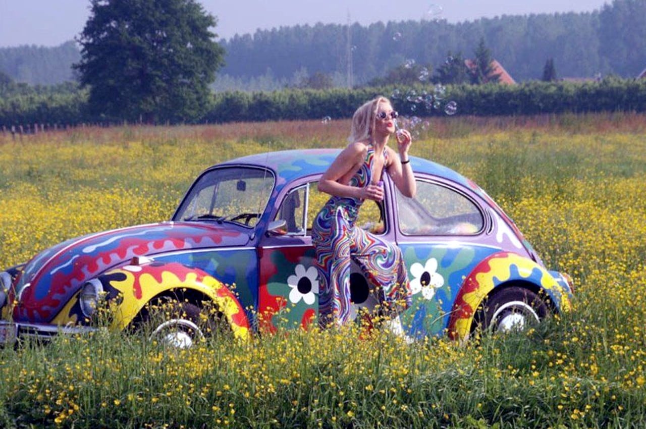 Le fondateur de la “beat generation” donna naissance à l’esprit “FLOWER POWER”, moteur du mouvement hippie quelques années plus tard. Alors, si vous pensiez encore que ces mecs-là n’étaient que de doux rêveurs fumant de l’herbe en gambadant tout nus dans la nature, vous allez être déçus ! Ce sont eux, les premiers “vrais” hippies américains qui revendiquaient la non-violence et la liberté de vivre librement leur sexualité. Ils y ajoutaient aussi la liberté de se droguer au passage, mais c’étaient avant tout des militants radicaux, pacifiques, politiquement très engagés, qui brûlaient en public leur papiers militaires pour éviter d’être envoyés au Vietnam et qui appelaient à la désobéissance civile. C’est-y-pas rock’n roll tout ça ? Yeaaaahhhh ! Petit bémol et cure d’incompréhension psychologique en prime, ces hippies adoraient les VW Cox et Bulli issus des rêves d’Adolf Hitler et Ferdinand Porsche ! Certes le Bulli est arrivé en 1950, mais c’était en fait une camionnette VW Cox… Incongru, n’est-il-pas ?