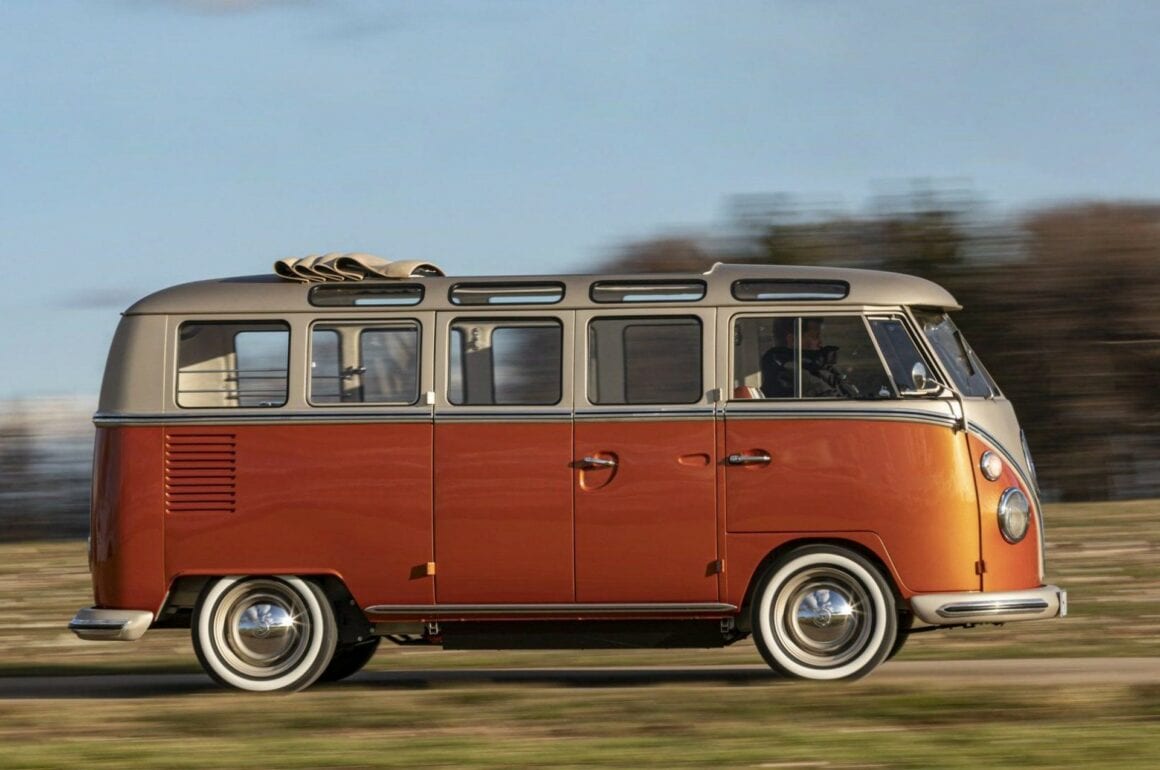 Combinée à la direction à pignon et crémaillère et aux freins à disques ventilés aux quatre roues, l’expérience de conduite est plus sûre et stable que celle du véhicule original. Sur le plan esthétique, il faut des yeux aguerris pour identifier les différences. À l’extérieur, il n’y a que les phares à DEL et l’indicateur de charge placé à l’arrière qui trahissent le véhicule. Autrement, il est fidèle à son histoire, avec sa couleur Orange “énergique” métallisé du plus bel effet. L’intérieur donne quelques indices du passage à l’électricité avec ce levier de vitesse tiré directement d’une Volkswagen récente, ces boutons placés à la console et cet indicateur de vitesse avec écran. Pour le reste, rien n’y paraît. Cet exemplaire ne sera pas le seul produit. Volkswagen Véhicules Commerciaux et son partenaire eClassics vendront le véhicule en série à un prix estimé à 64.900 €.