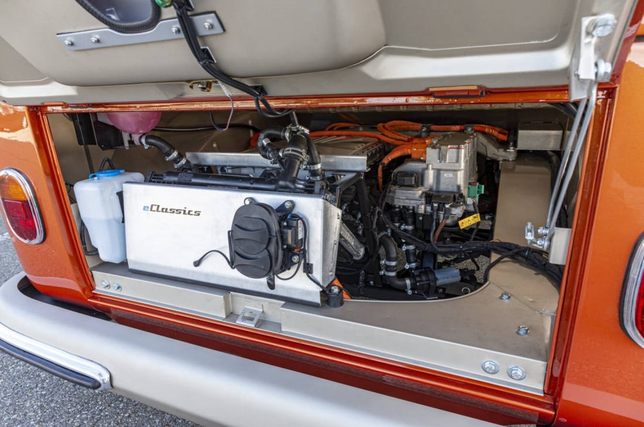 Celui-ci cache une mécanique 100 % électrique issue des plus récents véhicules électriques de Volkswagen. En effet, le moteur 4 cylindres à plat d’origine est remplacé par un moteur électrique de 61 kW, une puissance près de deux fois supérieure. Le couple généreux de 156 lb-pi de l’engin électrifié est également deux fois plus élevé que celui du moteur qu’il remplace. La vitesse de pointe bondit donc de 105 km/h à 130 km/h. Le moteur est jumelé à une transmission automatique à un seul rapport, qui transmet l’énergie aux roues arrière. Cette énergie provient d’une batterie lithium-ion de 45 kWh placée dans le plancher de la bête, à l’instar des véhicules électriques actuels. L’autonomie de ce groupe motopropulseur est d’un peu plus de 200 km et la recharge peut s’effectuer avec une borne rapide de niveau 3, nécessitant alors 40 minutes pour atteindre 80%. Parmi les autres modifications, le châssis en a subi plusieurs. La suspension est maintenant à bras multiples aux quatre coins et est munie d’amortisseurs ajustables.