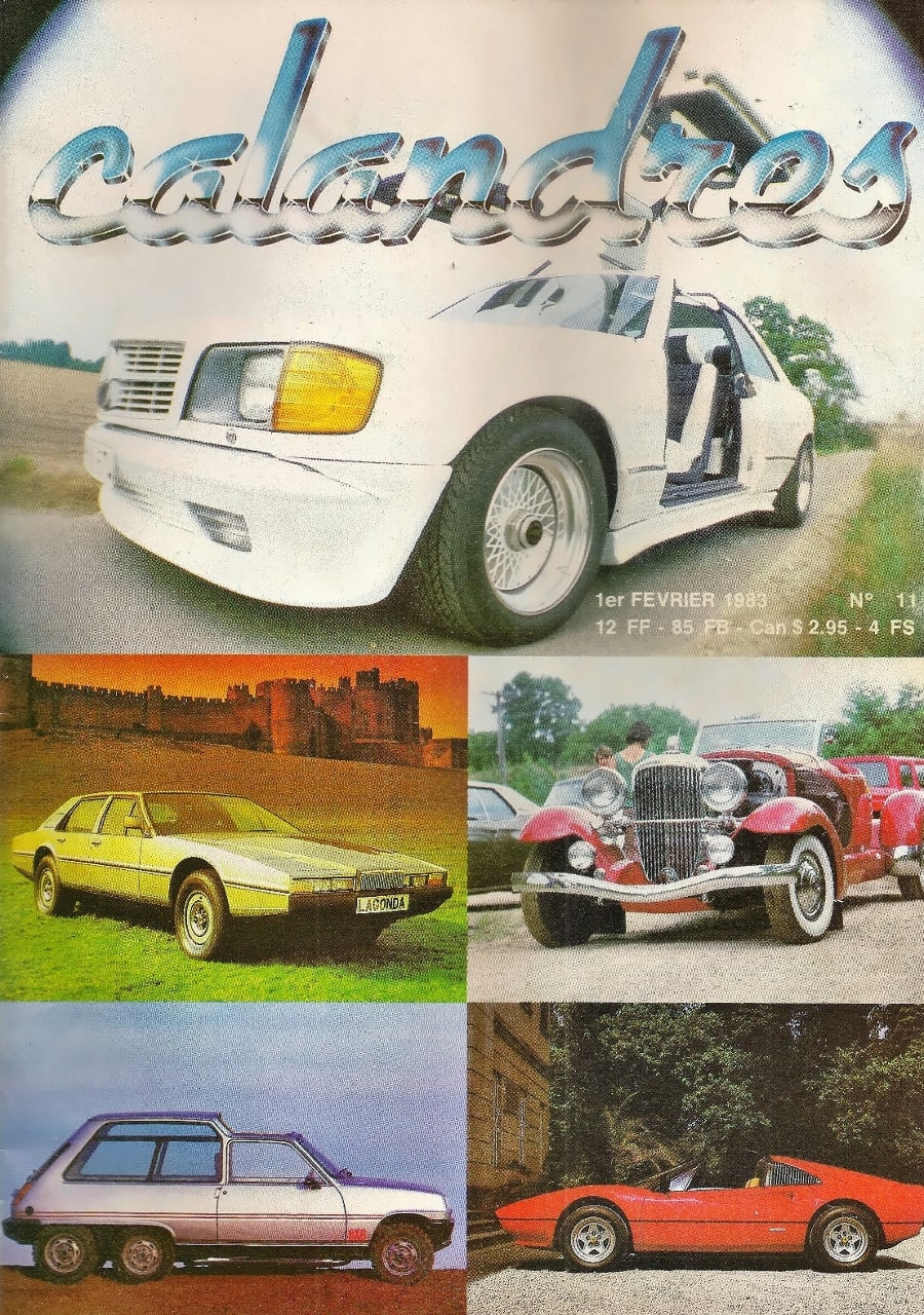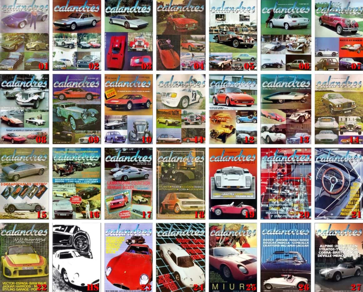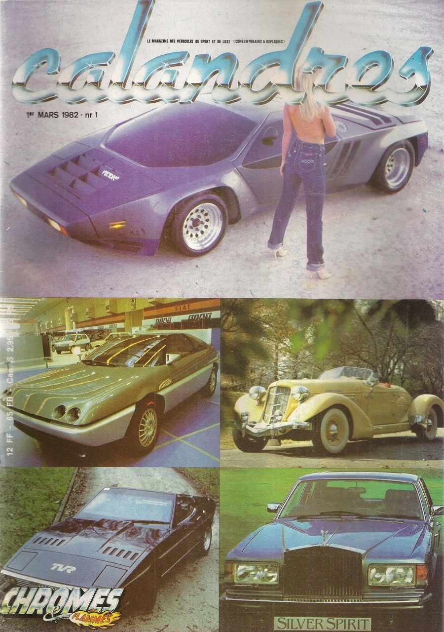 “Calandres” souhaitait entraîner ses lecteurs sur des sujets ne concernant pas les automobiles produites en masse, sous forme d’une extension du mythique Chromes&Flammes publié mensuellement dans les années ’80 jusqu’à 500.000 exemplaires en cinq langues/édition…, on y causait Hot-rods, Kustoms, Choppers, Dragsters … Le premier numéro de Calandre était vendu 12 francs (4 €uros actuels), il faisait fantasmer les jeunes lecteurs avec quelques vues suggestives de la Vector, les autres articles étaient plus sobrement illustrés invitant à découvrir des Bentley’s et Rolls Royce’s, des Corvette’s, TVR’s, ainsi que des petits constructeurs : Duchatelet, Elegant Motors, Excalibur’s, Clénet’s, Donkervoort’s…, sans sommaire, ni de rubriques régulières…, les lecteurs étant immédiatement plongés dans les articles proposés.