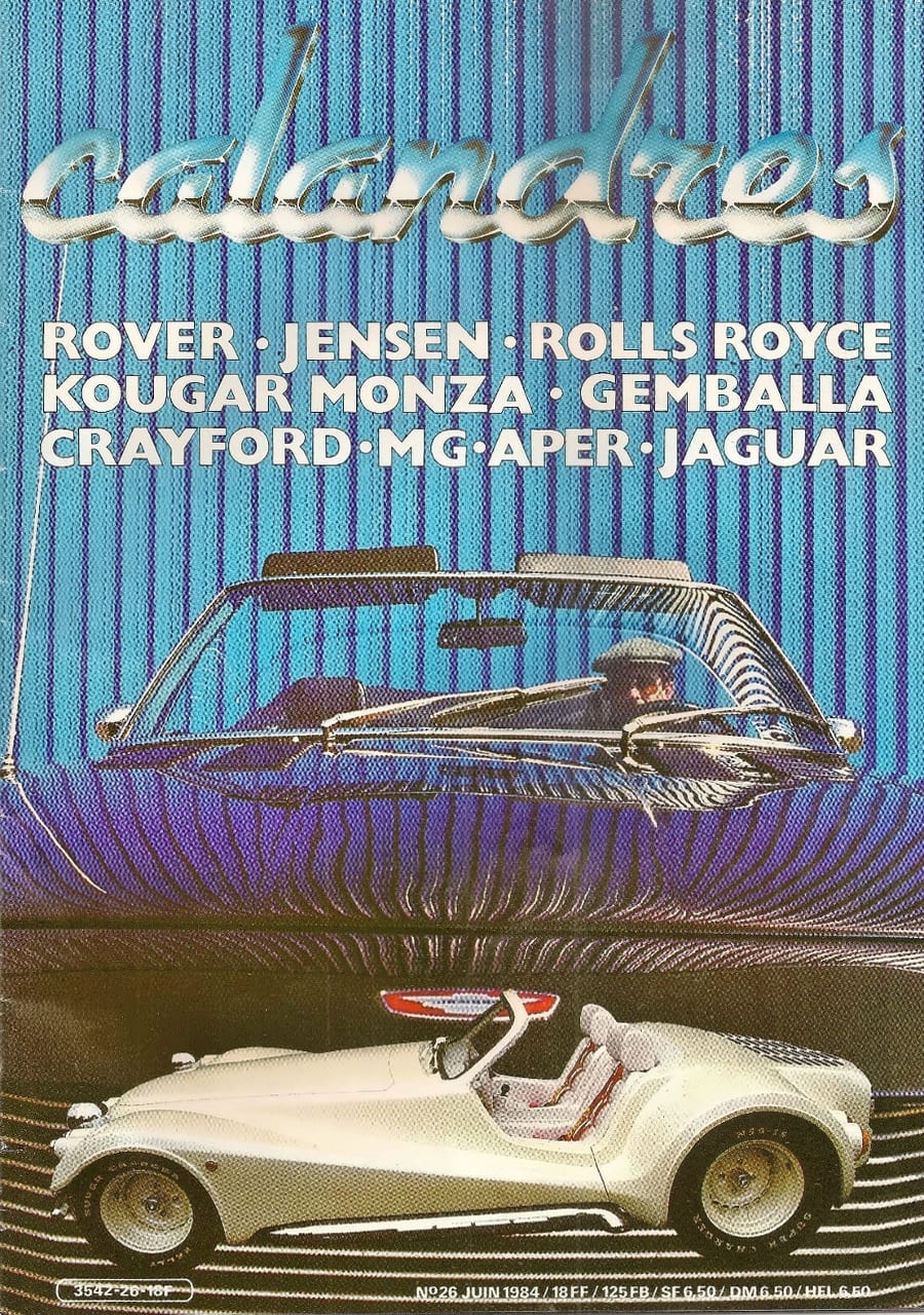 La maquette de “Calandres”, dans les premiers numéros, était on ne peut plus simple…, les photos parfois d’une qualité très relative (sic !) étaient posées ici et là, sans grande recherche esthétique…, quelques impressions sur des doubles pages frisaient la catastrophe… et la médiocre qualité du papier utilisé ne les mettait pas en valeur…, par contre si les textes étaient correctement rédigés, le style n’avait pas encore le style “Gonzo” de GatsbyOnline et des nouveaux magazines “Chromes&Flammes” ressortis depuis fin 2018… Demeurons objectif, il fallait prendre le mensuel “Calandres” pour ce qu’il était : du rêve en couleur sur papier, pour pas très cher, et l’occasion de découvrir des autos qu’aucun magazine ne prenait alors la peine d’évoquer. L’aventure a duré jusqu’au numéro 27 de juillet/août 1984.