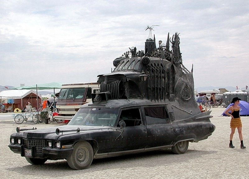 – Carthedral took me all the way to Seattle to the north, Houston to the east, and many places in between. She drove to the Nevada desert for the burning man festival at least six times over the span of a decade. I lost a wheel going down the freeway at 60 mph and lived to tell the tale. I was pulled over by the police only twice. I was called a satanist, a goth, a witch, Rob Zombie, and a sicko among other things. I’ve been spit at, bowed to, applauded, and booed. I met a couple celebrities, I’ve been asked for my autograph and gotten rock star parking… Most of the time, however, parking was a problem. hehe. I’ve lived in the boonies, inside Carthedral, in San Francisco, on a boat, in the suburbs, a cottage, a warehouse, a condo, an apartment, and a loft. I’ve been depressed, deeply hurt, ecstatic, and in love!