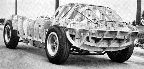 The first body was hand-formed in aluminum, to match a simple wooden buck built over the frame and a tubular sub-structure was formed to support it.