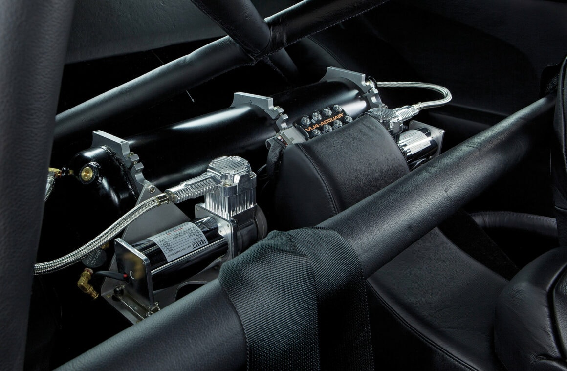 C’est dans le sens “sans encombrement”, ne comptant que sur un enregistreur de données Racepak pour enregistrer les performances pour un examen ultérieur… “Ouaisss Patrice, je voulais essayer des choses qui n’étaient pas faites dans les compétitions de burnout, comme les jantes de 24 pouces, le revêtement en vinyle noir mat, des ventilateurs de refroidissement plus puissants et des radiateurs plus volumineux, tout plus gros, plus gros, plus gros et plus gros comme les pénis austaliens en érection sont les plus gros du monde… et un énorme compresseur pour avoir comme une voiture d’exposition qui est une voiture de burnout”…