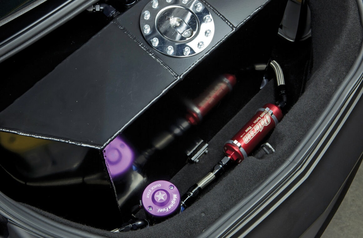 Moteur: World Products Bloc BBC, V8 Merlin III, 632ci, compression 10,5:1, têtes Alloy Pro-Filer. came à rouleaux hydrauliques, lubrification à carter sec Petersen à 5 étages, tiges Oliver, manivelle Callies, pistons JE, allumage MSD Pro Mag 12A… Compresseur Littlefield 16/71, 8 p avec injection Enderle 990. Système d’échappement avec collecteurs primaires à tube long de 2,5 pouces personnalisés, silencieux Flowmaster… Chaîne cinématique : Dedenbear Powerglide, convertisseur de décrochage TCE 2800…
