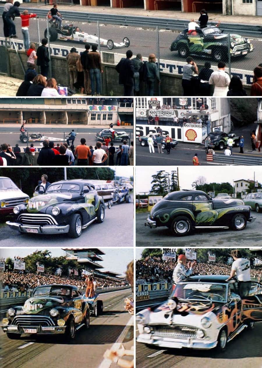 Les initiateurs étaient Gilles Gaignaut et Philippe Debarles que j’ai rencontré à Paris et qui étaient tellement fauchés, qu’ils m’ont “invité” à déjeuner (à mes frais) à l’Armée du Salut, pour discuter de qui ferait quoi…, Chromes&Flammes à “pris l’affaire en main” et a “ramené” à ses seuls frais une quinzaine de Dragsters (avec leurs pilotes et mécanos), ainsi qu’assuré la promo et le suivi rédactionnel via le magazine, qui, pour l’occasion changea définitivement son nom : “Pretty Car” en “Chromes&Flammes“…