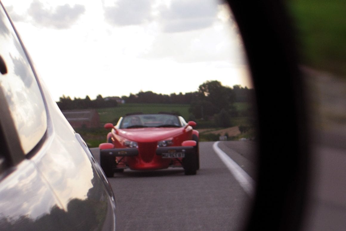 On n’a rien inventé de plus absurdement génial qu’un Prowler si ce n’est la religion automobile politiquement-correcte, surtout lorsqu’elle conduit l’être le plus intelligent de la Création (l’Homme) à se prosterner corps et biens devant de simples machines telles les Porsche’s et Ferrari’s, pour lesquelles certains se rendent eux-mêmes les esclaves à force d’idolâtrie… grâce à elles, l’homo-automobilis a trouvé moyen d’assouvir sa servilité naturelle depuis que les Messies, Führer et autres Grands Timoniers ont cessé de donner sens à sa condition de mortel… attention cependant aux impostures, car il en est de la vraie Porsche et de la vvraie Ferrari, comme de la Vraie Foi… si les membres obtus de ces confréries d’illuminés fanatiques s’en écartent trop, par exemple en regardant un Prowler, ou pire en se mettant à son volant, tout Porschiste et Ferrariste risque de choir dans les méandres du pêché et donc, risque l’excommunication immédiate à défaut d’une majoration importante des factures d’entretien et de la fin des invitations aux réunions entre initiés…