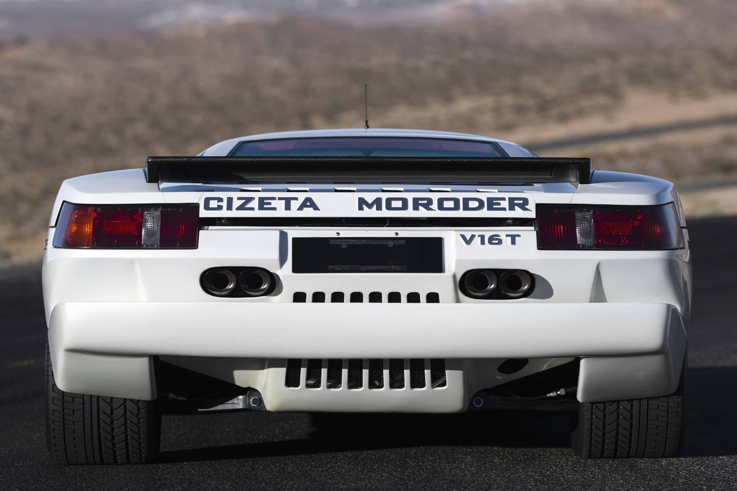 La Cizeta-Moroder V16T blanc-frigo qui illustre cet article est le tout premier prototype construit et le seul exemplaire à porter le badge “Cizeta-Moroder”. C’est donc ce numéro 001 qui a été révélé pour la première fois en 1988 lors d’un événement ponctuel à Los Angeles, avant d’être présenté au Salon de l’auto de Los Angeles 1989, puis au Salon de l’automobile de Genève peu de temps après. Moroder est resté “éternellement” propriétaire de sa voiture sans l’utiliser. En 2018 il a toutefois fait effectuer une remise en service mécanique complète par les ateliers “Conception Canepa” en Californie, pour s’assurer un bon fonctionnement pour les années à venir.