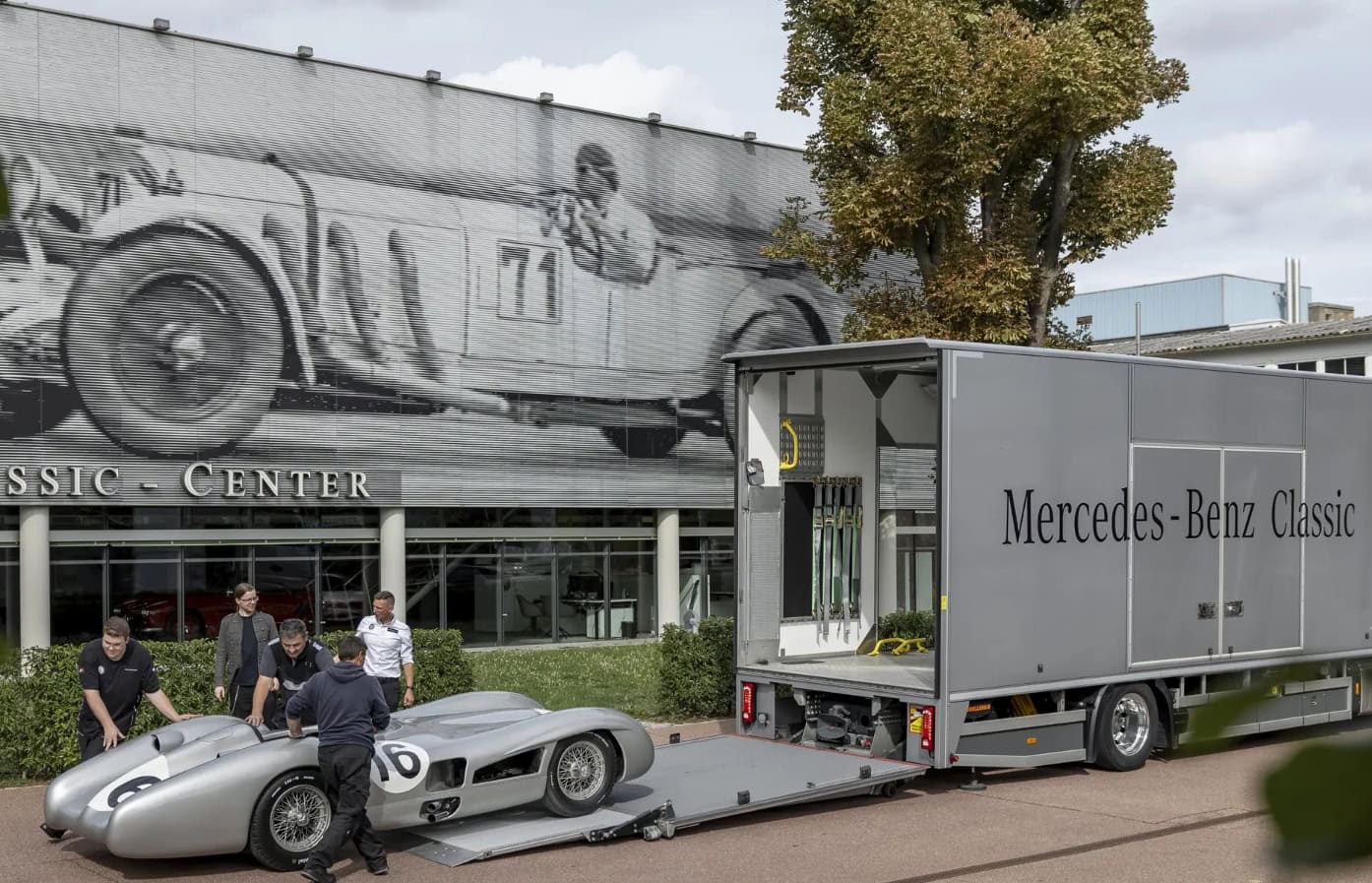 Pour cette exposition, Mercedes-Benz a commandé 50 gallons de carburant de course Esso (Exxon) à livrer. Le Stromlinienwagen a été expédié par le port de Baltimore à la fin d’avril et transporté par camion à Indianapolis. Officiellement offerte à l’Indianapolis Motor Speedway Foundation le dimanche 30 mai 1965, la Mercedes-Benz a fait deux apparitions au cours du week-end. La première a eu lieu lors d’une présentation informelle après la réunion annuelle des pilotes, où la voiture a été présentée par Peter DePaolo en l’honneur de la victoire de Mercedes 50 ans plus tôt par son oncle, Ralph DePalma. Le lendemain, DePaolo a de nouveau pris le volant avant la course principale du lundi, après que la voiture ait été officiellement présentée au musée IMS par Mercedes-Benz. Pendant près de six décennies, la W 196 R a été minutieusement entreposée et entretenue par l’Indianapolis Motor Speedway Museum, étant occasionnellement invitée à assister à des expositions importantes, telles que le Concours d’élégance d’Amelia Island en 1996, le Salon international de l’auto du Canada en 2003 et la grande réouverture du Petersen Automotive Museum redessiné en décembre 2015.