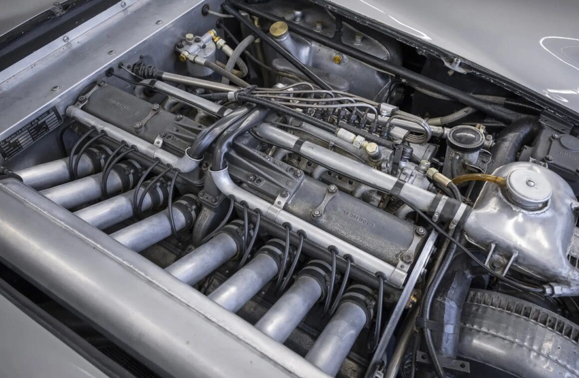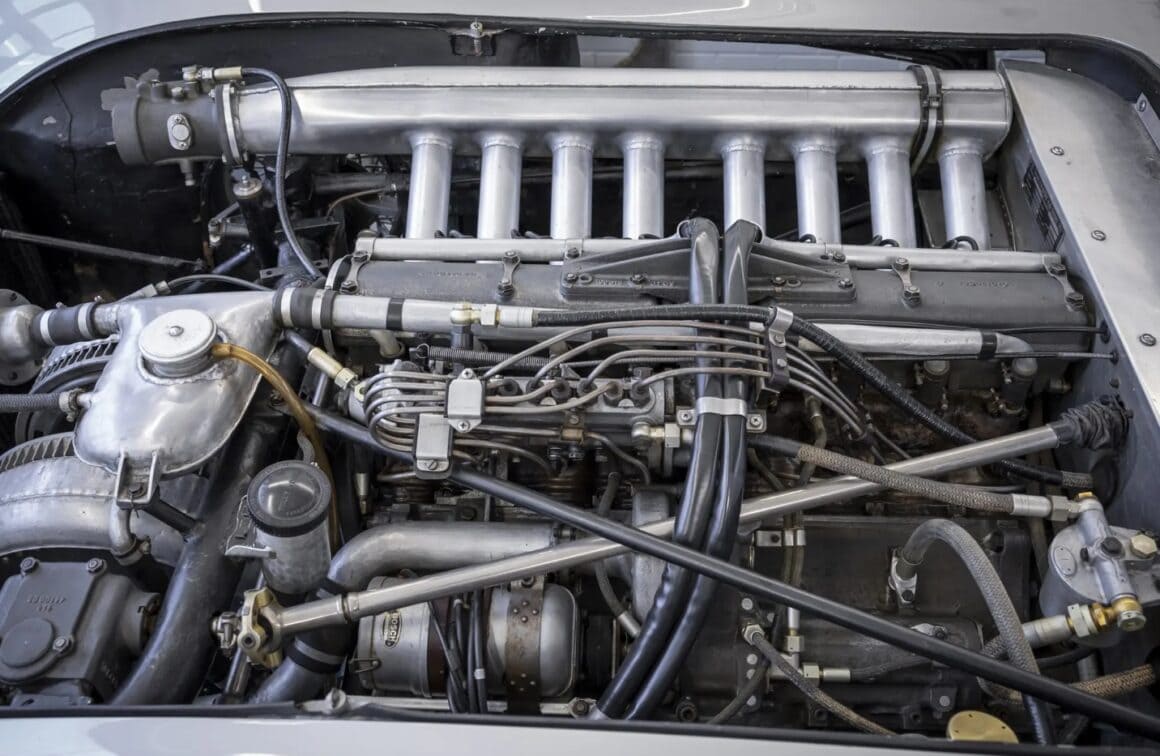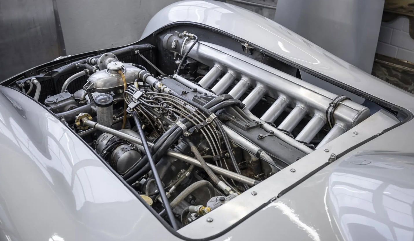 Conçu autour d’un vilebrequin complexe à roulement à rouleaux Hirth, le moteur était essentiellement composé de deux moteurs à quatre cylindres à l’unisson, avec deux arbres à cames pour chaque admission et échappement. Ce bijou de moteur était équipé de composants de course tels que le double allumage et la lubrification à carter sec, tout en étant doté d’un engrenage de soupape desmodromique révolutionnaire au lieu de ressorts de soupape standard ; et l’injection directe de carburant haute pression Bosch qui garantissait une application fiable et fluide de la puissance. Le moteur M196 développé à cet effet développait initialement une puissance robuste de 257 chevaux, qui a été progressivement améliorée au cours des deux saisons pour atteindre 290 chevaux. Le moteur était positionné bas dans le compartiment avant, incliné de 20 degrés pour gagner de la place, et couplé à une boîte de vitesses à cinq rapports montée à l’arrière actionnée par un embrayage à sec monodisque. La boîte de vitesses comportait des synchronisations inhabituelles dans les quatre rapports supérieurs, tandis qu’un différentiel à glissement limité assurait une traction supérieure.