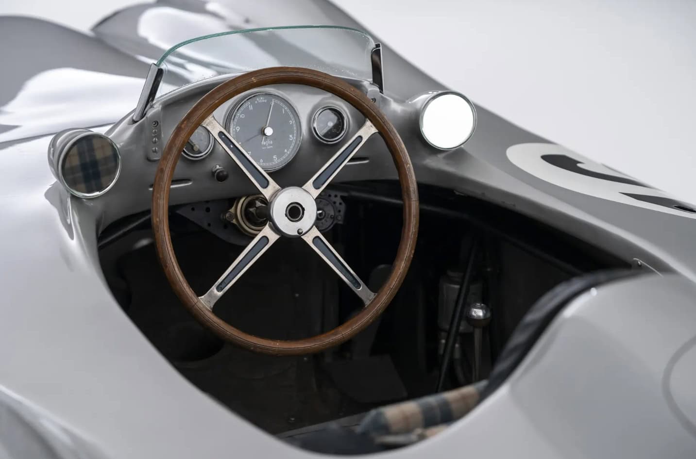 Il dégage en effet une brillance presque impossible à imaginer. La voiture est l’un des 14 châssis construits. On pense qu’il s’agit de l’un des 10 exemplaires complets connus survivant à la fin de la saison 1955 de Formule 1. Parmi ceux-ci, cet exemplaire était l’un des quatre seuls montés avec la magnifique carrosserie Streamliner à la fin de la saison 1955 de Formule 1. Il s’agissait d’une partie intégrante de la campagne de course d’usine qui a vu Mercedes-Benz remporter deux championnats des pilotes de Formule 1 en autant de tentatives, et un championnat du monde des voitures de sport au cours de la même période. Propulsée par Fangio au Grand Prix de Buenos Aires en 1955 et par Stirling Moss au Grand Prix d’Italie de Formule 1 à Monza en 1955, cette W 196 R a été pilotée par deux des pilotes de course les plus célèbres et les plus accomplis de l’histoire. À la suite de l’une des campagnes de compétition les plus réussies que l’on puisse imaginer, la voiture a été retirée de la majestueuse collection interne de Mercedes-Benz avant d’être donnée neuf ans plus tard au tout aussi respecté Indianapolis Motor Speedway Museum, dont la collection comprend certaines des plus belles voitures de course du monde.