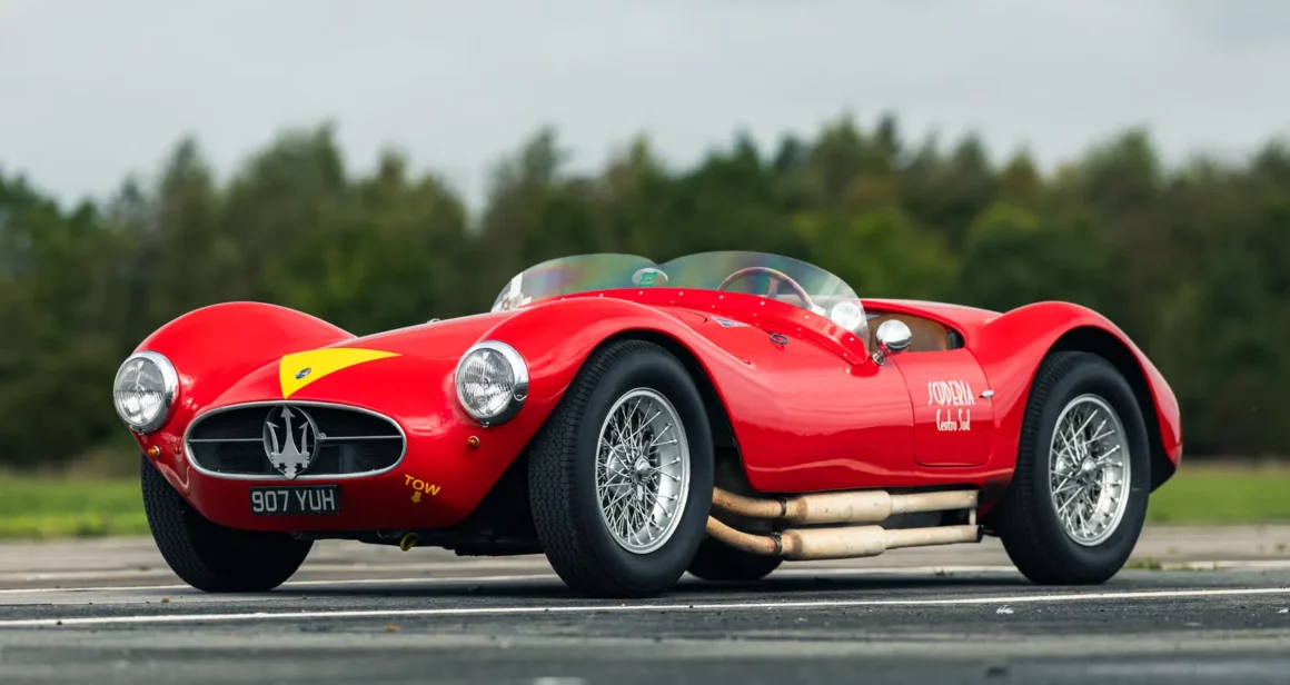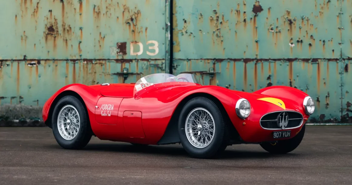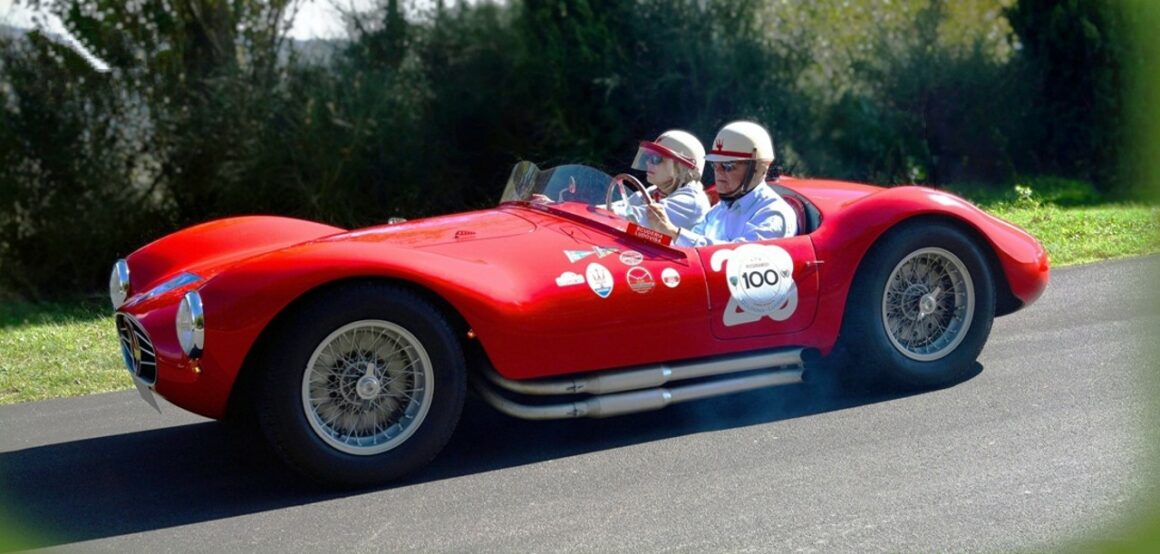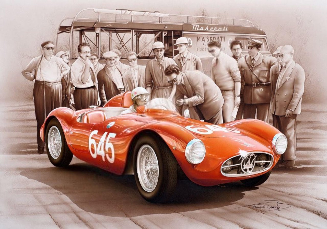 En 1953, le design a été mis à jour avec une nouvelle carrosserie à roues couvertes, imaginée et réalisée par Fiandri, équipée d’un moteur 6 cylindres en ligne de 2 litres fortement revisité d’un bloc en aluminium avec deux arbres à cames en tête. Le châssis tubulaire a également été revisité et équipé de doubles triangulations indépendantes à l’avant et d’un essieu arrière rigide. Cette Maserati #2085 a été commandée neuve par le Gentleman Racer Principe Gaetano Starrabba di Giardinelli, directement auprès de l’usine en Janvier 1955 et elle sera livrée seulement 2 mois plus tard à son domicile de Palerme, en Sicile.