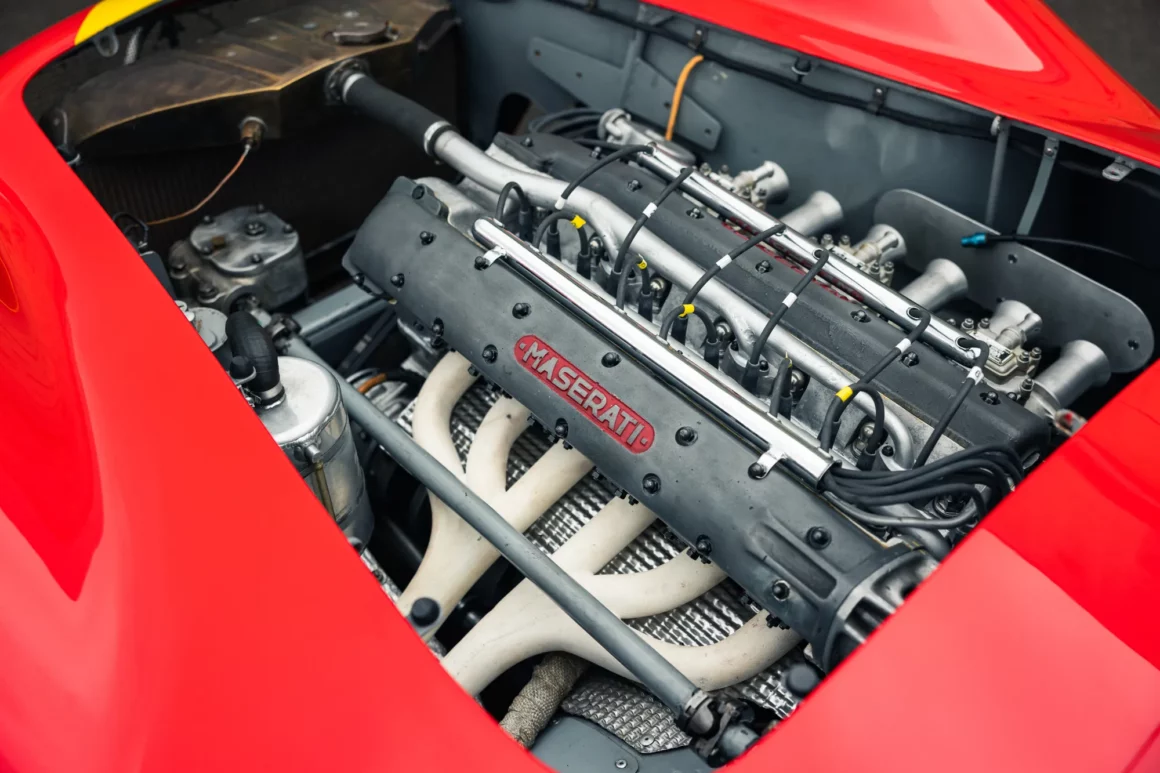 Devant ses dessous désanchanteurs accusant l’âge, il l’a immédiatement envoyée pour une restauration complète. de la carrosserie qui a été confiée à la Carrozzeria Auto Sport de Bastiglia, ayant pour instruction de préserver autant que possible l’aspect original. La Maserati est donc devenue un clone d’elle même qui n’était réellement plus elle si ce n’est son numéro de châssis. Elle a été repeinte dans ses couleurs d’origine, à savoir le rouge clair Maserati avec le triangle jaune à l’avant et l’inscription Scuderia Centro Sud sur les côtés, comme lors de sa première course en Sicile. L’illusion était parfaite.