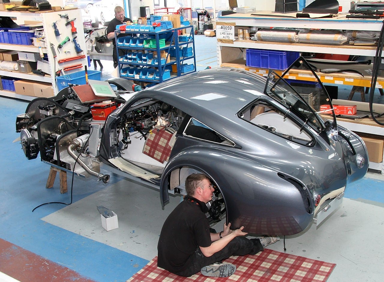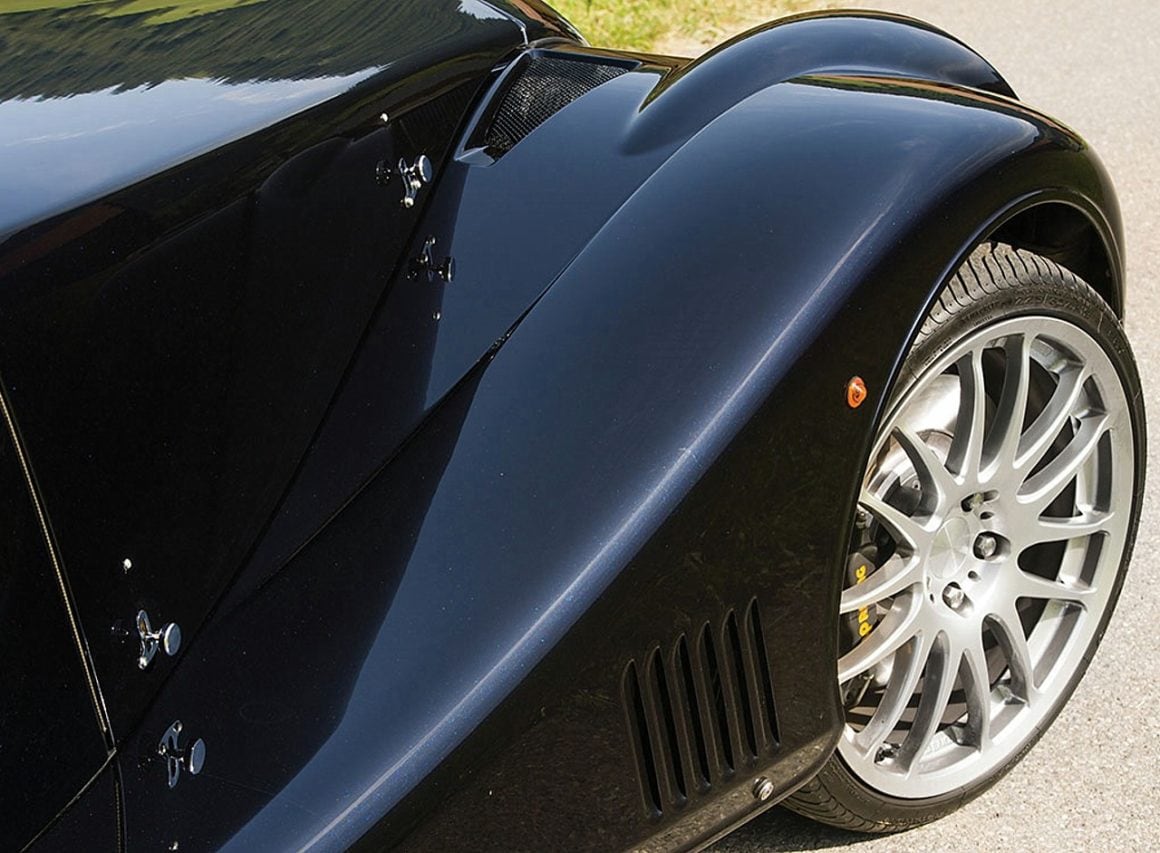 Quatre mois plus tard, une maquette réalisée à partir d’un dessin de Matthew Humphries (que personne ne connaît) lui est présentée, le banquier Jet-setteur est bluffé par le résultat obtenu avec l’avant dérivé de l’Aero 8, la partie arrière qui évoque la Bugatti Atalante et/ou T57S Atlantic et autres Talbot Lago T150C SS…, un profil bien typé année ’30 (si on débarque chez Morgan, ce n’est pas pour se faire créer une Vector)… et il trace un second chèque…