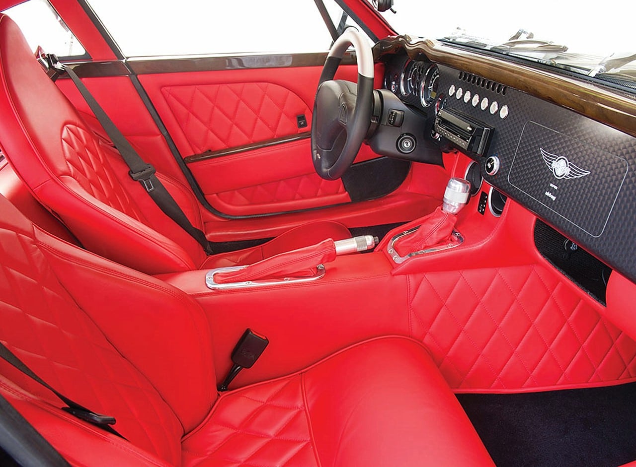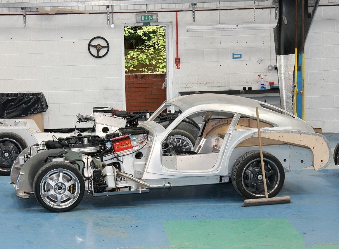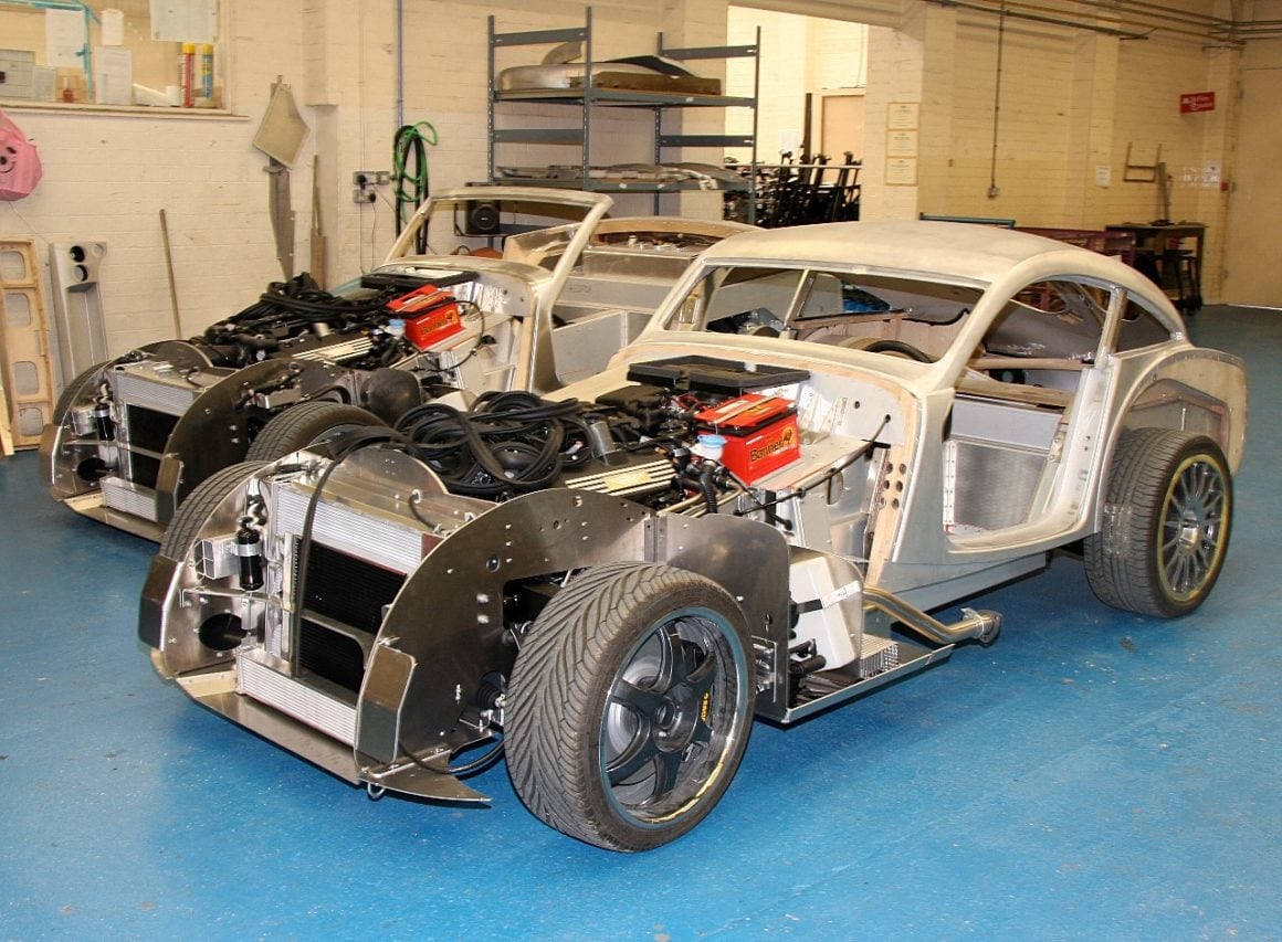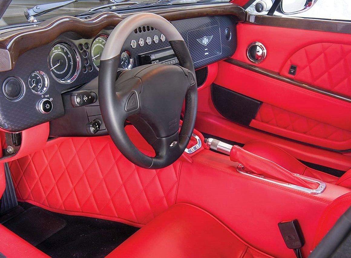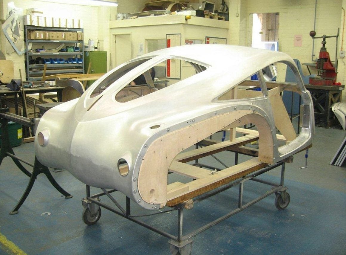 Ce style néo-rétro se retrouve aussi dans la conception : un châssis tout en aluminium extrudé, soudé, collé et riveté, une technologie contemporaine, avec entre autres quatre roues indépendantes à double triangulation, rotules Uniball pour toutes les articulations, amortisseurs inboard activés par des basculeurs, freinage assuré par des étriers AP Racing à six pistons et disques ventilés… toutefois outre que cette technologie ne semble pas bien comprise ni appliquée…, c’est sur ce châssis “contemporain”, qu’un improbable bâti en bois de frêne, sert d’armature à la carrosserie !