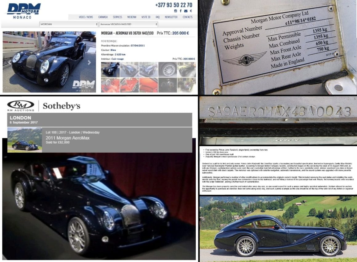 Des circonstances étranges mêlant une soif inextinguible d’argent (frais et immédiat) à poussé la belle chez Sotheby (RM-Auctions) pour être placée sans prix de réserve dans la vente aux enchères du 6 septembre 2017 à Londres… ou elle sera vendue 92.000 Livres Sterling (un rapide calcul, quoique complexe, vous démontrera que c’est pas loin de la moitié de 205.000 euros)… mais d’autres sources indiquent qu’en fait, la belle aurait poussé un hurlement en constatant que DPM Monaco vendait la Morgan pour plus du double du prix négocié (il n’y a pas de petits profits chez DPM, j’en sais quelque chose, d’expérience) et a récupéré sa chère bestiole pour la confier à Sotheby.
