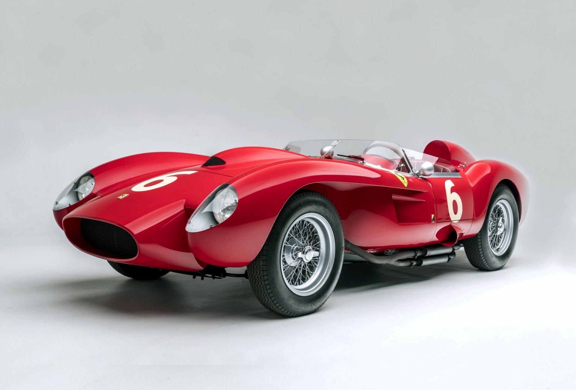 La Ferrari 250 Testa Rossa succédait à la 500 TRC, introduite à la fin de la saison de course 1957 en réponse à la nouvelle réglementation de la FIA qui imposait des moteurs de maximu 3,0 litres dans le Championnat du monde des voitures de sport. Elle partageait de nombreuses pièces avec la 500 TRC, mais a disposait du V-12 Tipo 128 “Colombo” beaucoup plus puissant réglé avec six carburateurs à double étranglement, une combinaison gagnante qui a conduit Ferrari à un titre de champion du monde des constructeurs en 1958. Avec moins de 35 exemplaires construits de 1957 à 1961, certains collectionneurs désireux de découvrir l’histoire et les performances de la 250 TR ont commandé des reconstitutions comme l’exemple en vedette dans cet article.