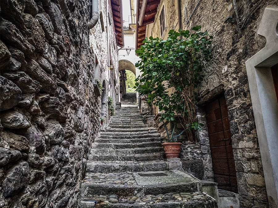 Il faut en effet parcourir ses rues avant de suivre les courbes de la route qui serpente entre les maisons en montant vers Brunate, à côté de la gare du funiculaire, où se trouve l’un des plus beaux points de vue du parcours, à 700 mètres d’altitude, avec une vue incroyable sur la ville et la branche Ouest du lac, ainsi qu’un fantastique panorama à 270 degrés sur la vallée du Pô jusqu’au Monte Rosa et les montagnes suisses.