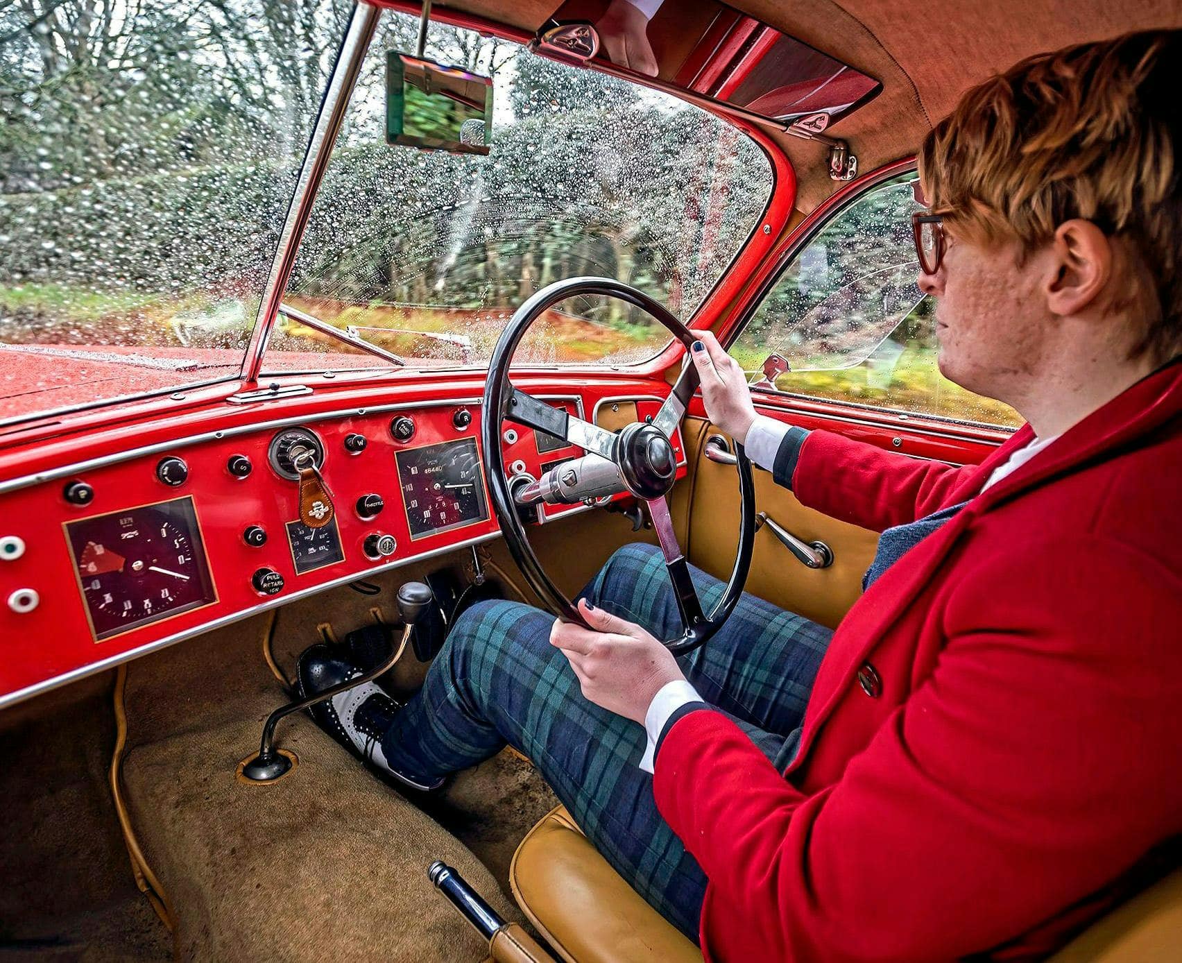 La majeure partie de la peau extérieure reste simplement en place, reposant sur les tubes situés en dessous, mais n’y étant pas attachée, tandis que les quelques points de connexion nécessaires sont principalement formés par emboutissage. Comme Aston Martin l’appréciera plus tard lorsqu’elle a autorisé la méthode de Touring pour construire les DB4 et DB5, plus d’une décennie après Bristol, la combinaison de panneaux en aluminium et d’un assemblage inspiré de l’aviation a permis d’obtenir une carrosserie plus légère et plus solide que ce que la carrosserie conventionnelle pouvait atteindre. Du point de vue du conducteur, cela se traduit par une agilité transformatrice. Lorsque la Bristol Superleggera ne joue pas sur ses forces athlétiques, la cabine peut être un endroit difficile pour s’asseoir. Dans ses tentatives de perdre du poids, le Touring a équipé sa conception d’une isolation de quelque nature que ce soit, de sorte qu’on y cuisine sous l’effet de la chaleur émanant de la cloison et du tunnel de transmission, parfumée par des halètements de vapeur de carburant…