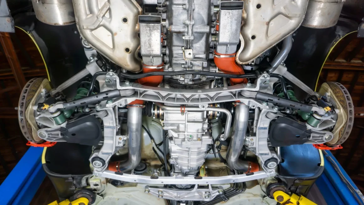 La cylindrée de 3,6 L reste identique à la version précédente équipant la série 964 tout en gagnant 23 chevaux associés à une boîte de vitesses à six rapports. De nombreuses améliorations électroniques s’y trouvent également, dans la gestion du moteur, les aides à la sécurité active (anti-patinage). Pour beaucoup de “Porscheristes”, cette série 993 reste la dernière “vraie” 911, associant le design inimitable et éculé (sic !)de la 911 à son fameux moteur six cylindres à plat refroidi par air. Sa production a duré cinq ans, de 1993 à 1998. La génération suivante, portant le nom de code 996, commençant toutefois sa carrière dès 1997. Ce qui distingue cette 911, ce sont sa carrosserie, ses freins et ses pneus. La carrosserie du modèle Turbo a été accouplée à la Carrera 4 à traction intégrale. Cela signifie qu’il y a un barrage d’air différent à l’avant, une extrémité arrière d’aspect chieur accroupi qui est considérablement évasée aux passages de roue arrière et une fente étroite de feux de freinage placés au-dessus de la lunette arrière plutôt qu’en dessous. L’engin dispose des énormes freins à quatre pistons à assistance électrique de la version Turbo, des jantes en alliage d’aluminium Turbo de 18 pouces au lieu de 17 et des pneus à profil plus bas ( Pirelli Asimmetrico P-Zero 225/40s à l’avant et 285/40s à l’arrière). Une fois de plus, Porsche a comprimé plus de puissance et de couple du six cylindres en alliage d’aluminium de 3,6 litres, passant de 270 chevaux à 282 chevaux et de 243 lb-pi à 250.