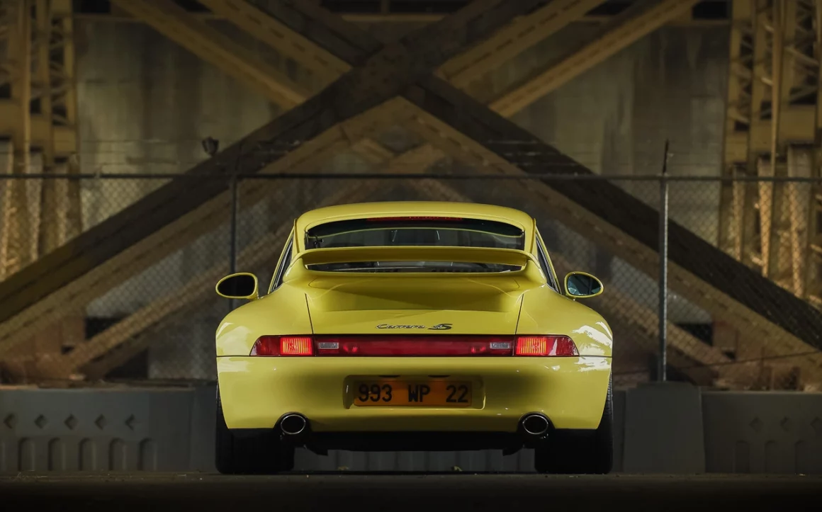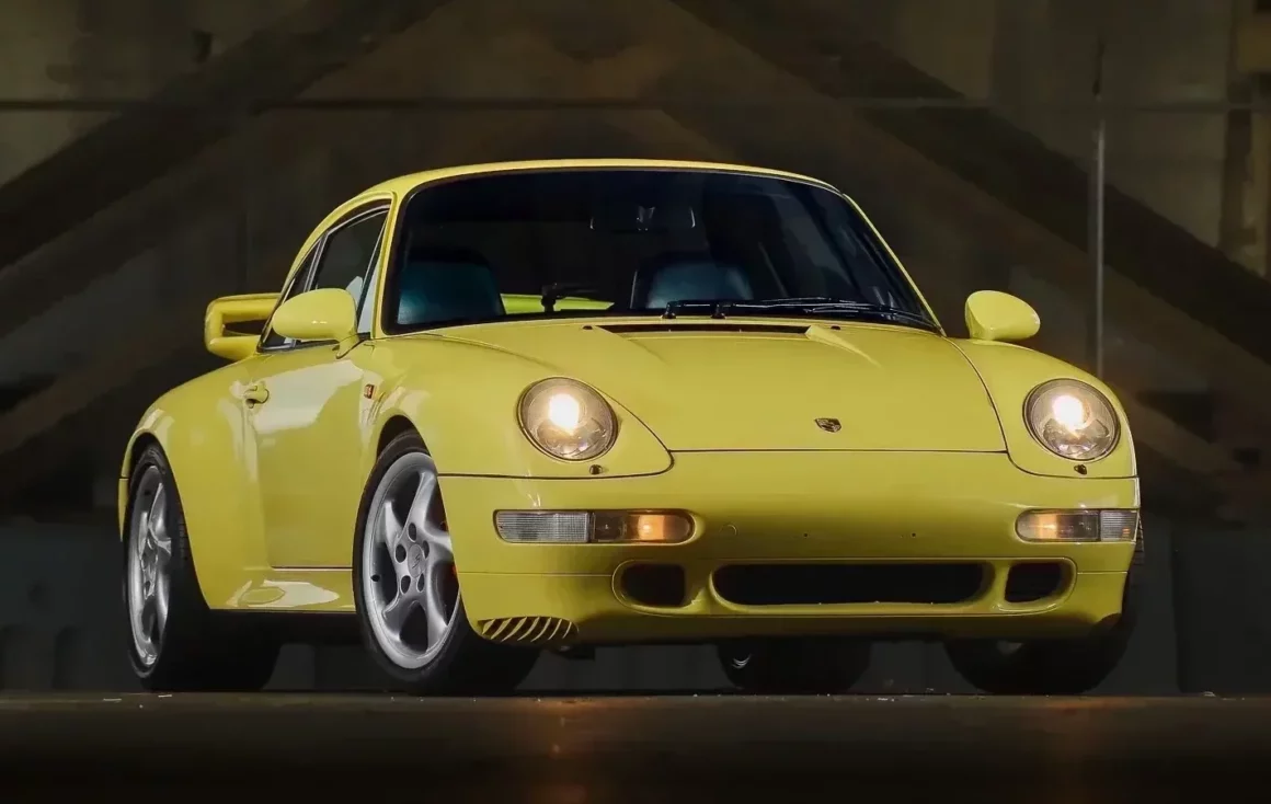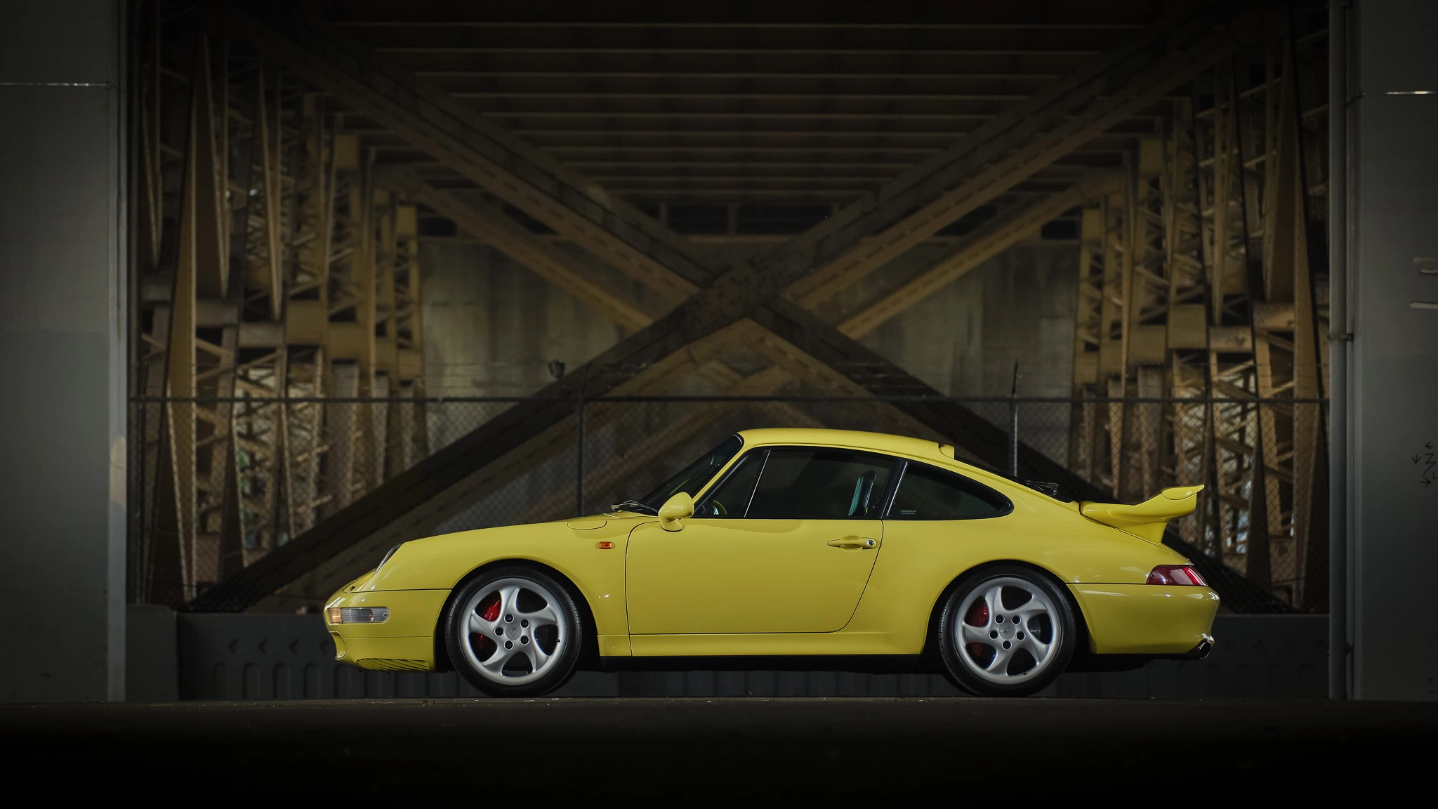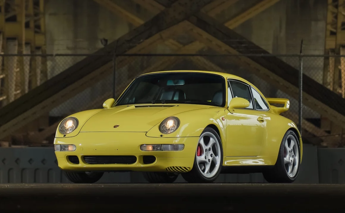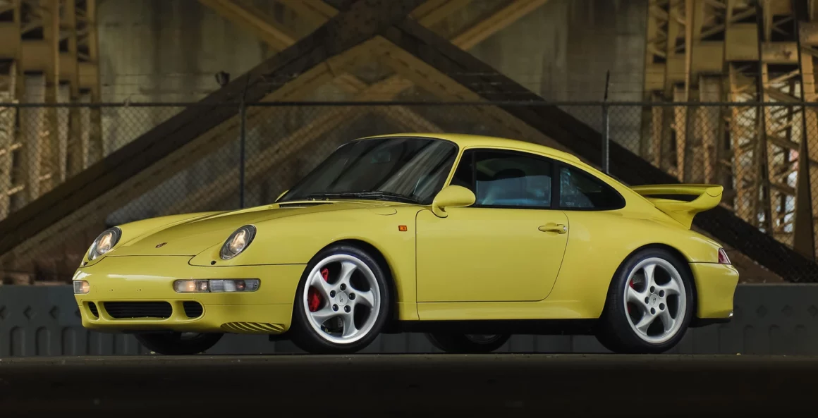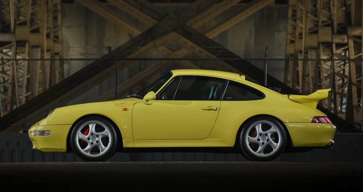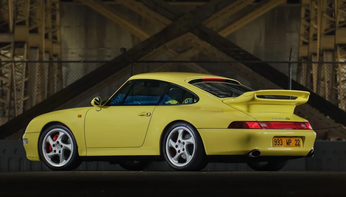 J’en viens (enfin) au coupé Porsche 911 Carrera 4S de 1996 qui illustre cet article ! Achetée par je ne sais qui neuve en Italie par un italien, celui-ci l’a vendue à un Français qui l’a exporté aux USA en 2022 parce que ce modèle y jouissait d’un prix de vent extraordinaire allant jusqu’à 200.000 $/€ (même parité suite aux sanctions envers la Russie) et affichant seulement 64.000 kilomètres. Son jaune Ukrainien d’été et sa sellerie en cuir noir devaient spermettre d’atteindre un record triplant le prix d’achat, d’autant que la motorisation de la bête était flatteuse (un flat-six refroidit par air de 3,6 litres et quatre roues motrices grâce à une boîte-pont manuelle à six vitesses et à un différentiel à glissement limité). La voiture a été modifiée “à l’américaine” avec un volant et des pédales TechArt, une barre de jambe de force avant, des sièges RS, un système d’alarme et un aileron arrière, tandis que l’équipement d’usine comprenait des jantes Turbo Twist de 18 pouces, des phares au xénon, un essuie-glace de lunette arrière, une chaîne stéréo CD et la climatisation.